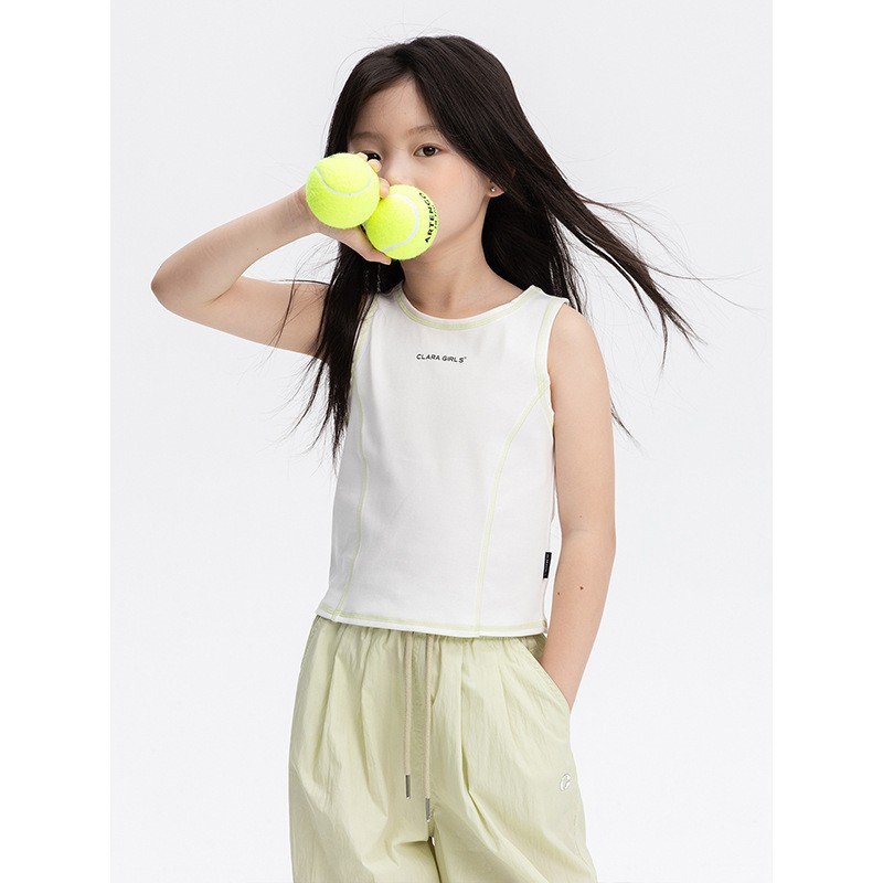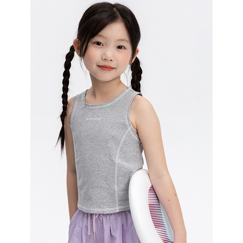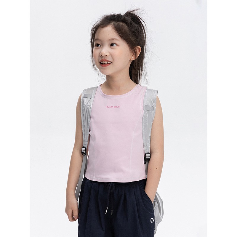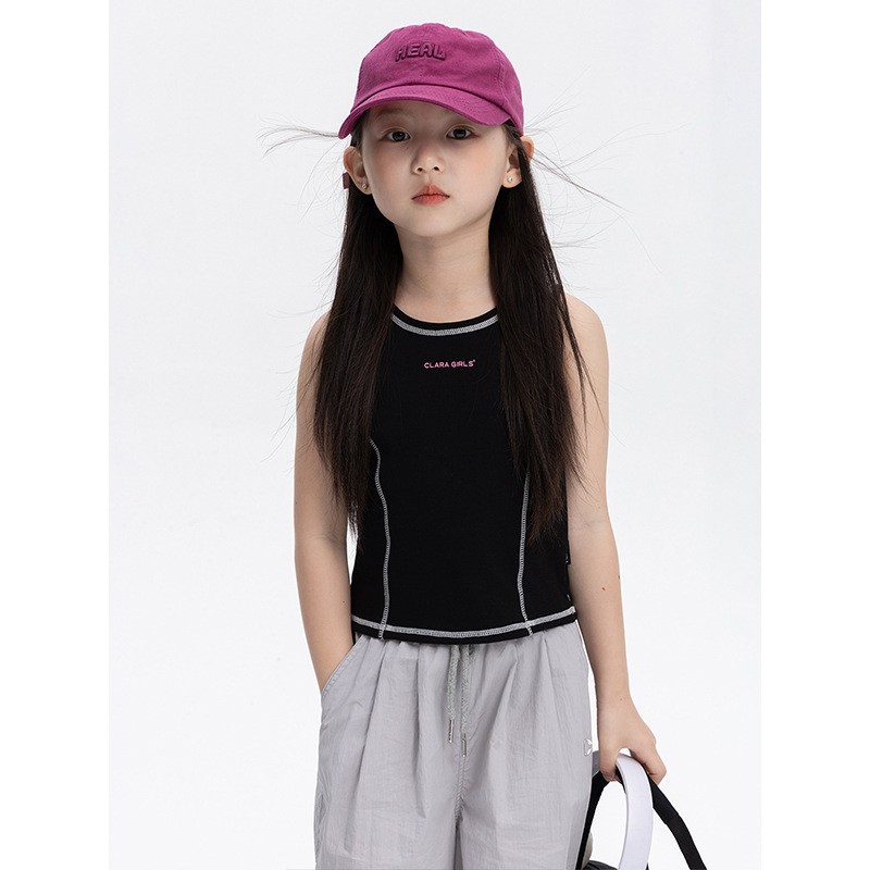 소녀 디자인 센스 스포츠 조끼 2025 여름 새로운 어린이 탄력 빛 쿨 센스 외부 착용 민소매 티셔츠 탑스토어 가기