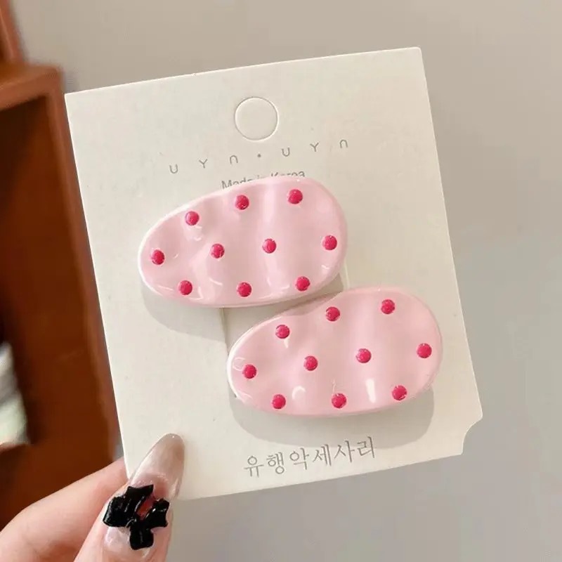 어린이 핑크 활 폴카 도트 덕빌 클립 한국어 앞머리 클립 이마 사이드 클립 머리 장식 헤어 클립 깨진 머리 소녀