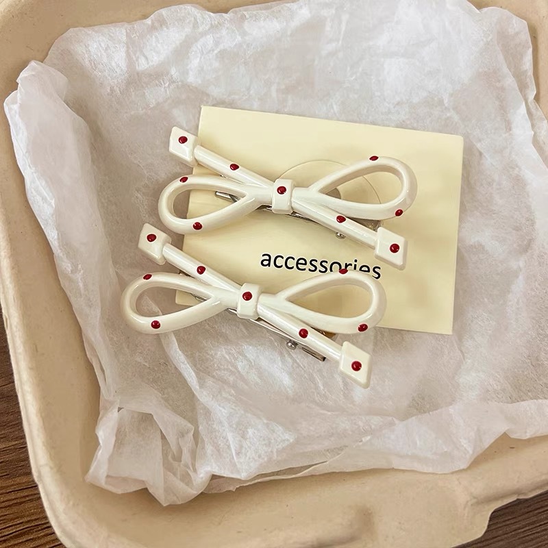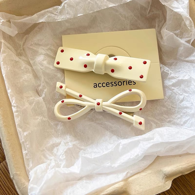 儿童粉色蝴蝶结波点鸭嘴夹韩系刘海夹前额侧边夹子头饰发卡碎发女