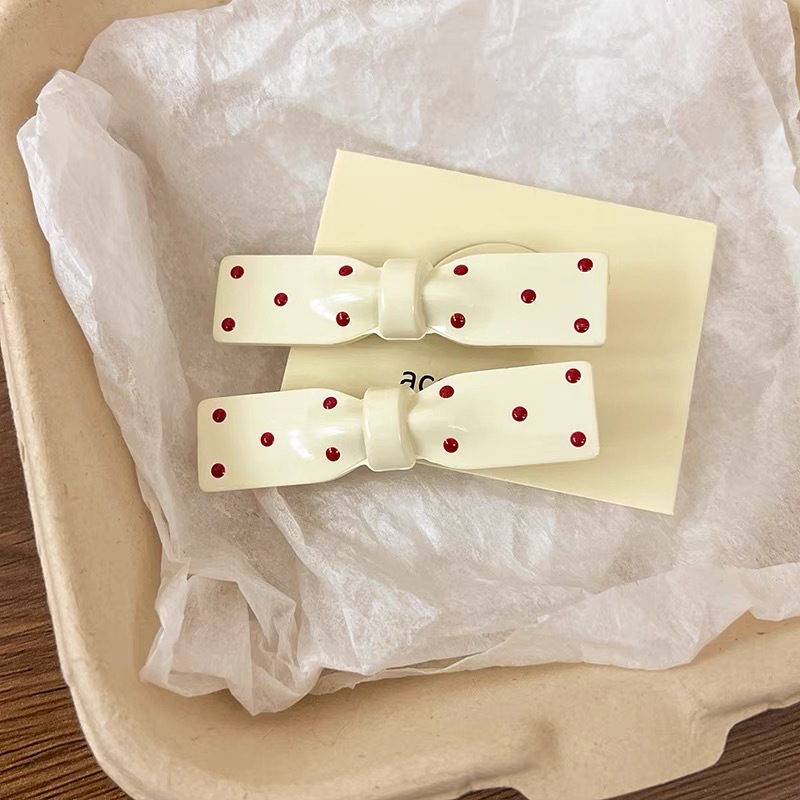 어린이 핑크 활 폴카 도트 덕빌 클립 한국어 앞머리 클립 이마 사이드 클립 머리 장식 헤어 클립 깨진 머리 소녀스토어 가기