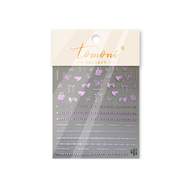 Tata&tomoni 네일 아트 스티커 핫 스탬핑 접착제 작은 향기로운 체인 보라색 나비 네일 장식품 ins스토어 가기