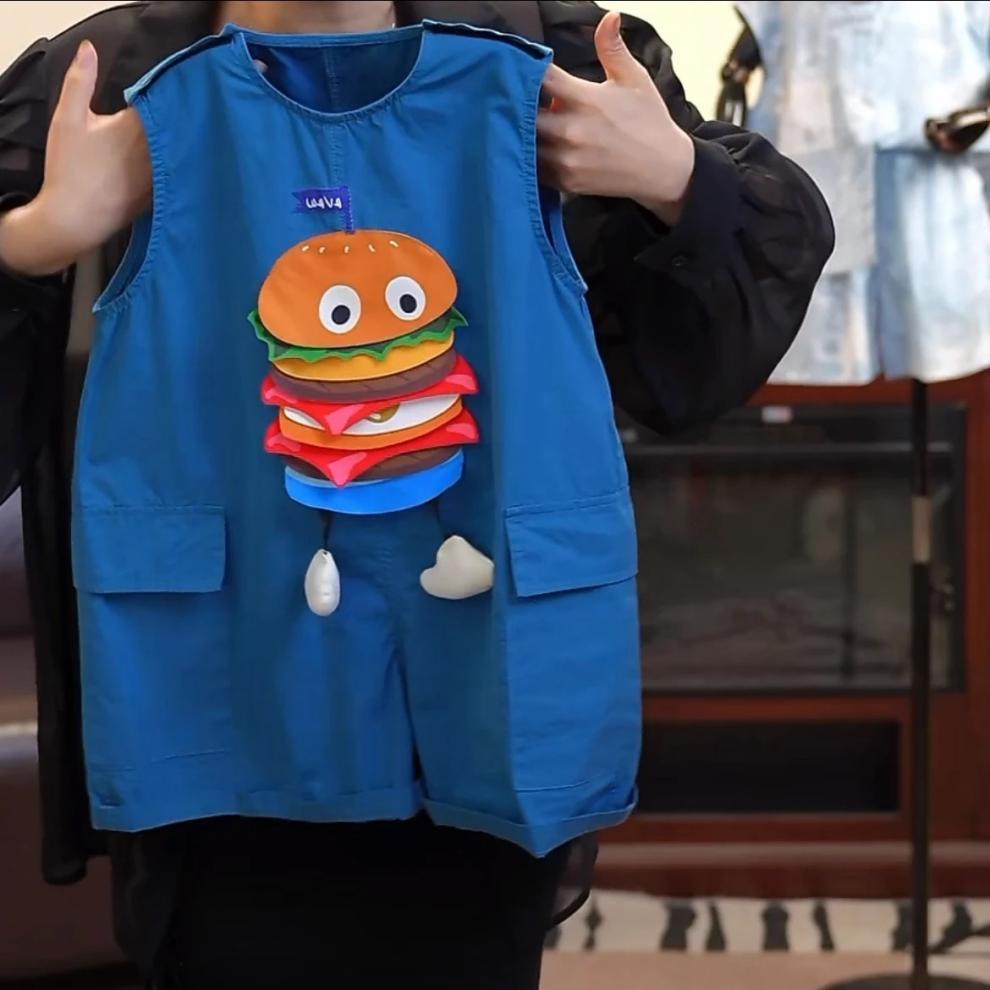 남성과 여성의 신생아 여름 한국 스타일 민소매 조끼 아기 재미있는 점프 슈트 만화 입체 하렘 버거스토어 가기