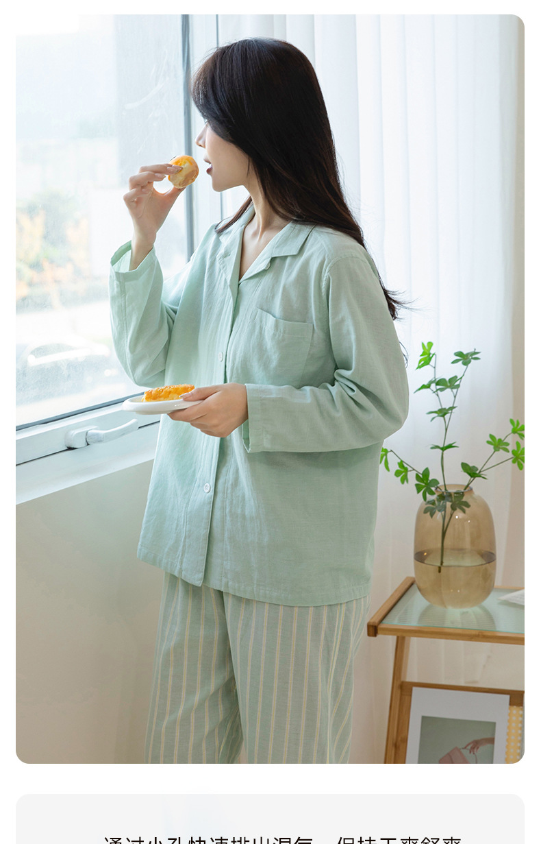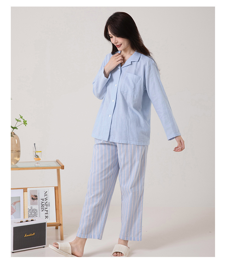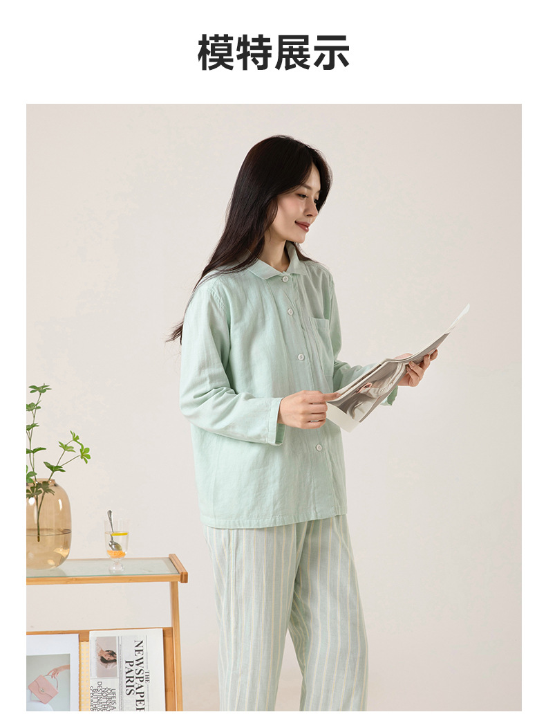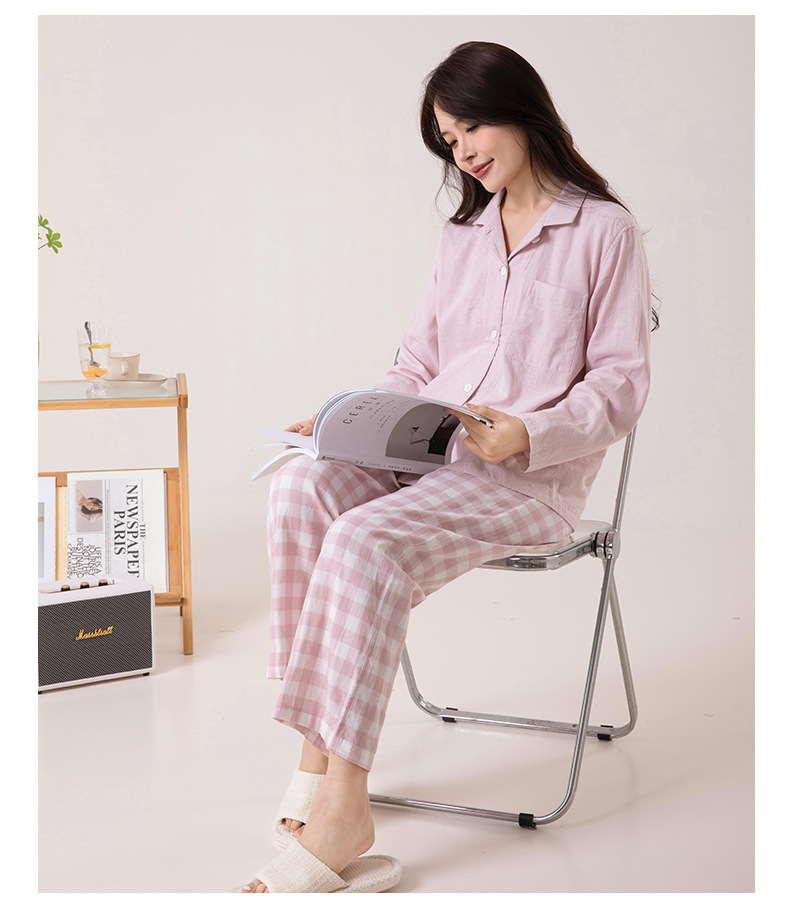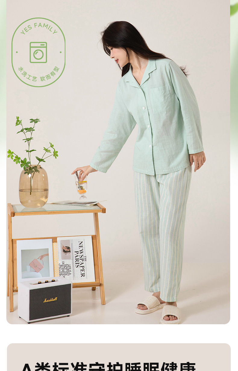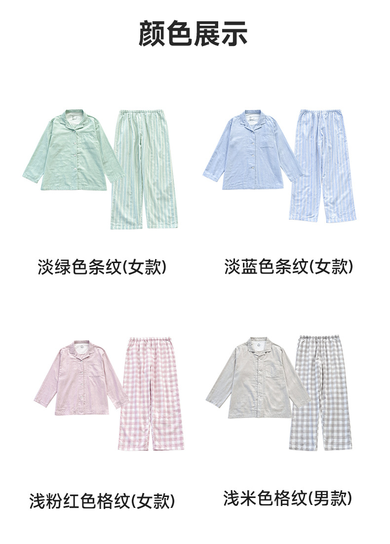 봄과 여름 새로운 모란 디 컬러 홈 의류 여성 남성 더블 레이어 원사 퓨어 코튼 긴팔 느슨한 외복 커플 잠옷스토어 가기