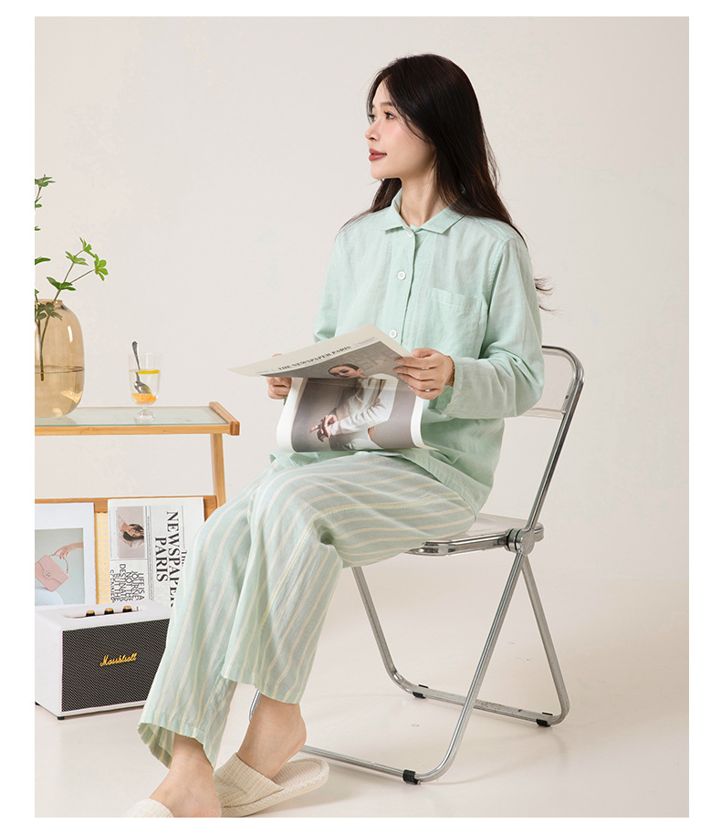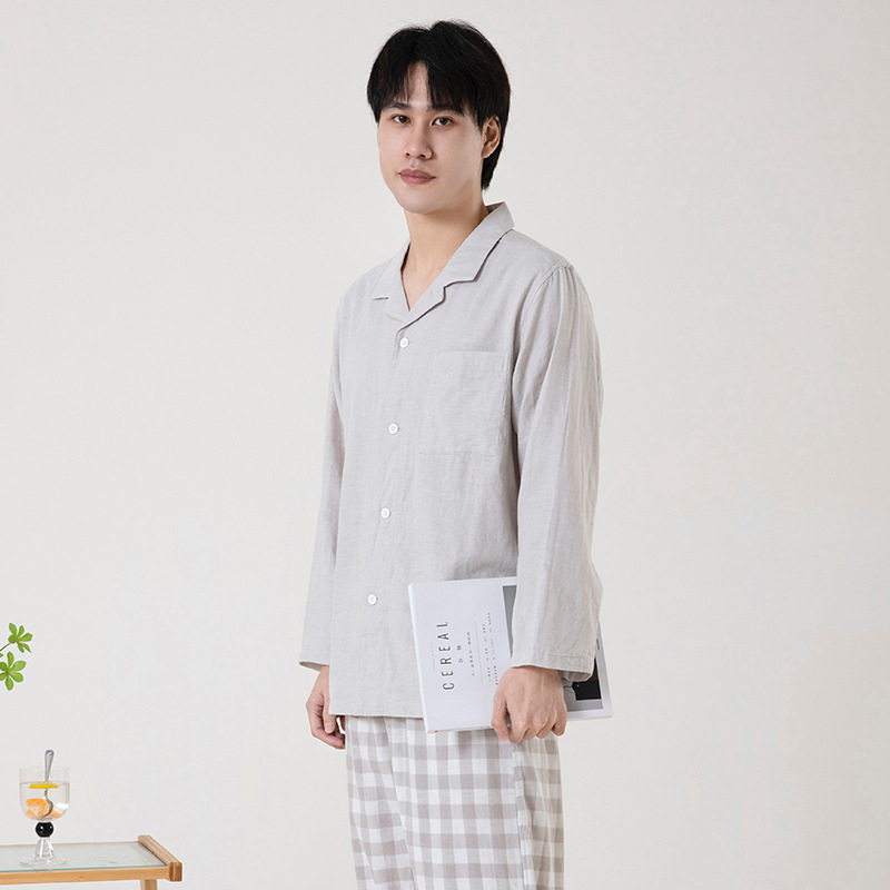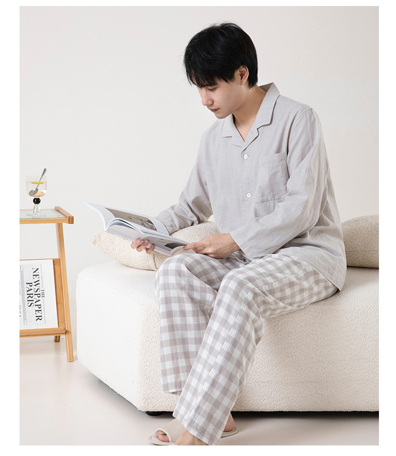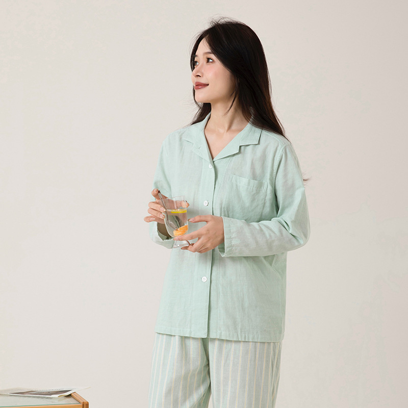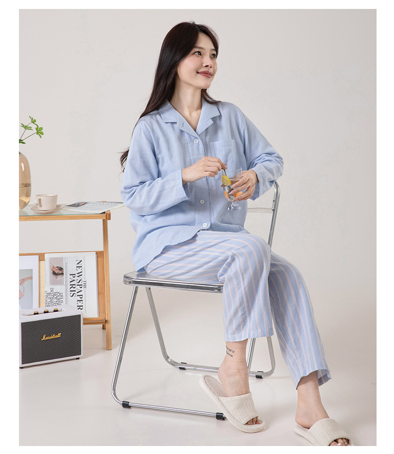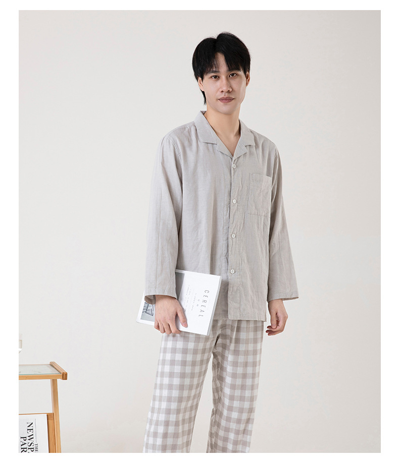 봄과 여름 새로운 모란 디 컬러 홈 의류 여성 남성 더블 레이어 원사 퓨어 코튼 긴팔 느슨한 외복 커플 잠옷스토어 가기