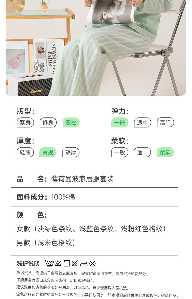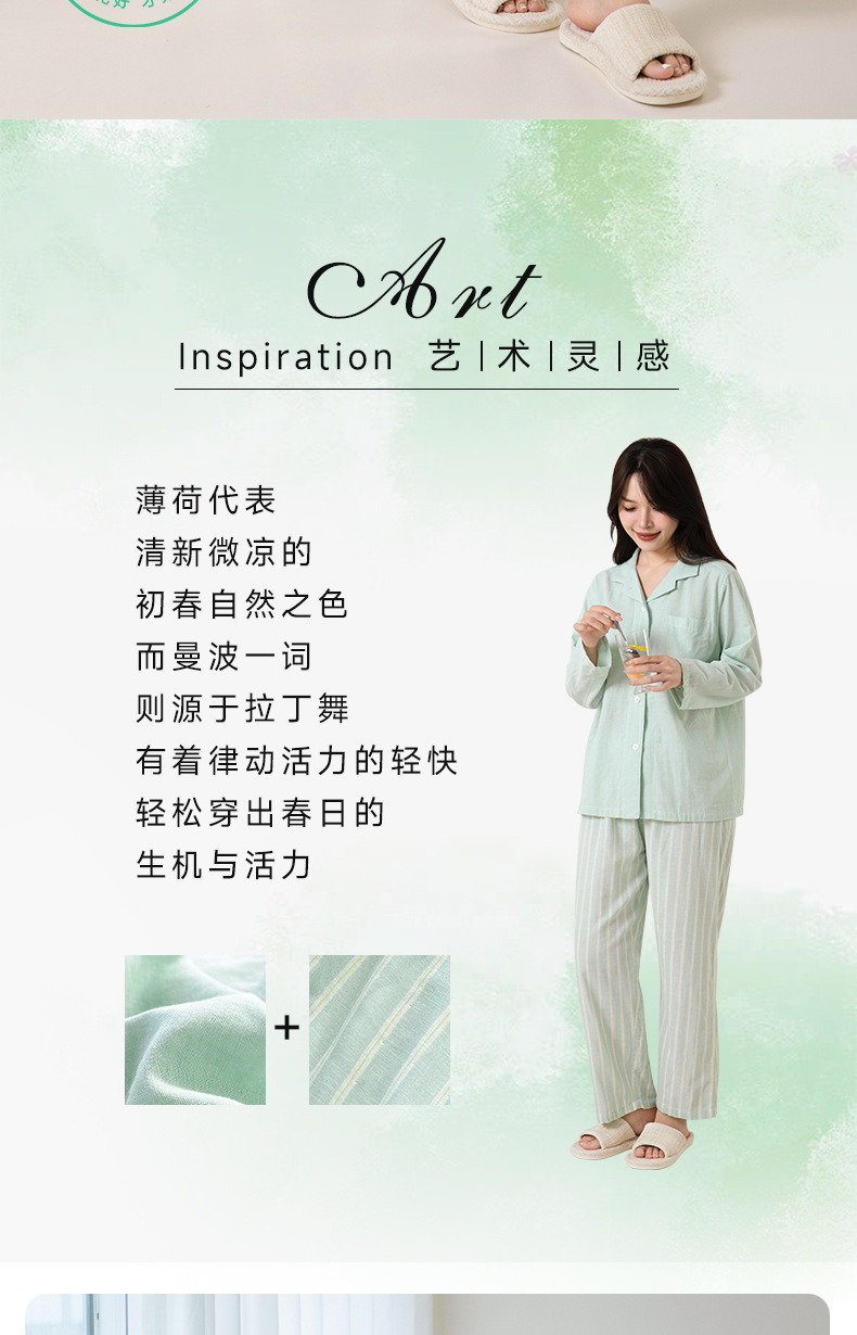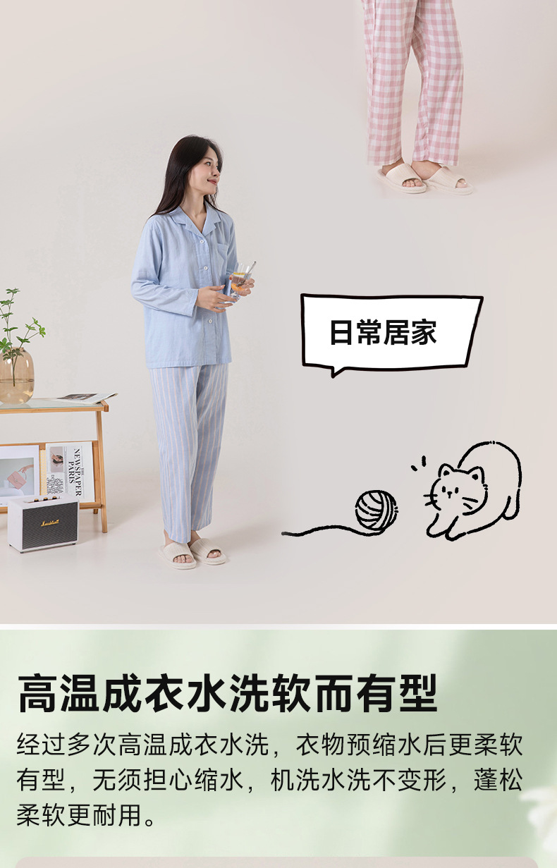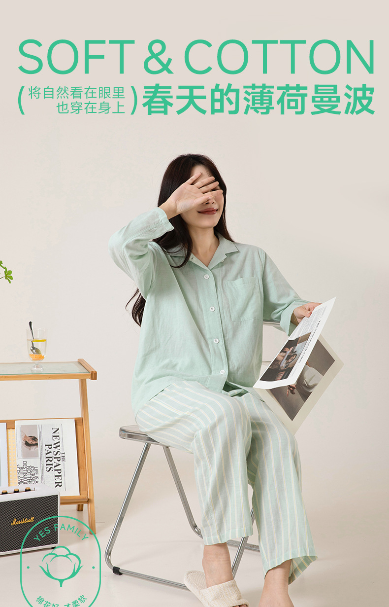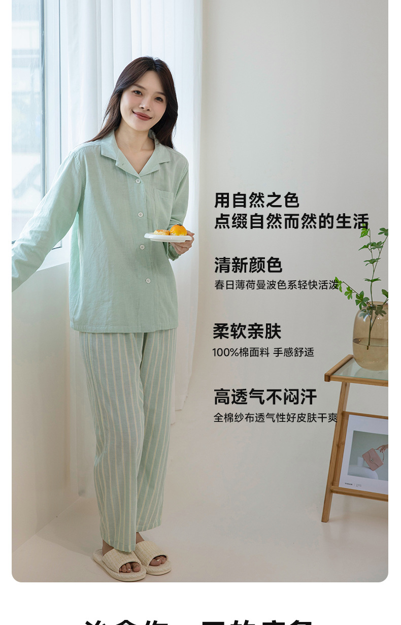 봄과 여름 새로운 모란 디 컬러 홈 의류 여성 남성 더블 레이어 원사 퓨어 코튼 긴팔 느슨한 외복 커플 잠옷스토어 가기