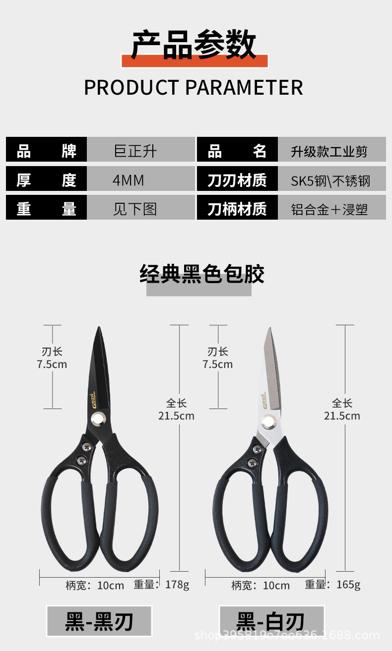 • 산업용 가위 [검은색 손잡이와 검은색 칼날]