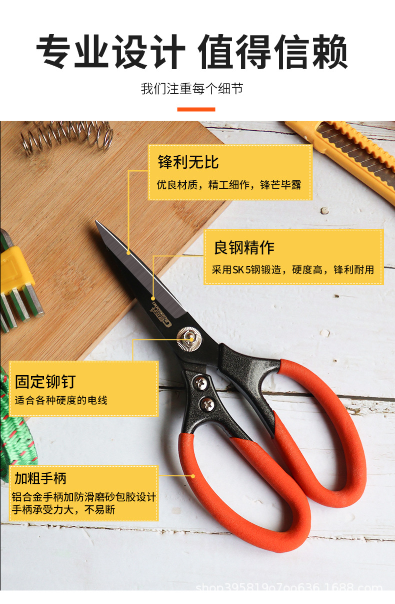 • 산업용 가위 [주황색 손잡이와 검은색 칼날]