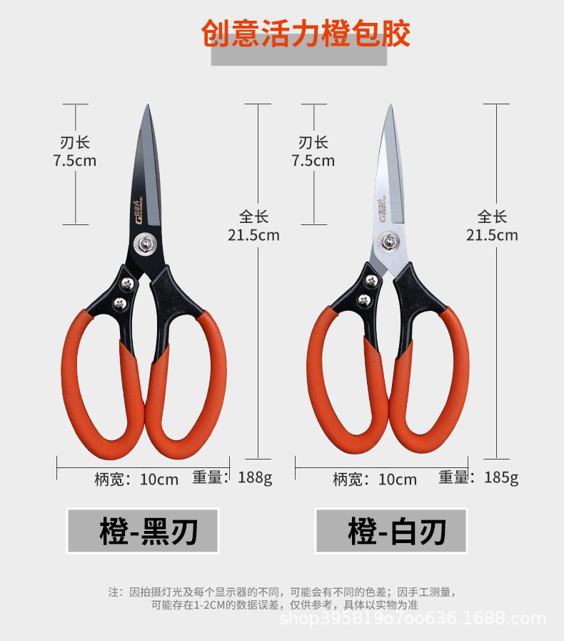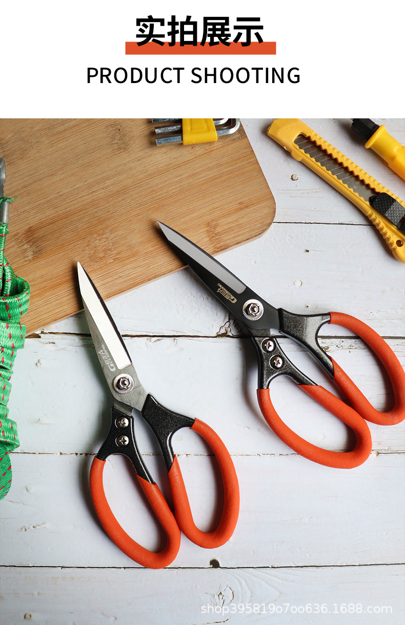 • 산업용 가위 [주황색 손잡이, 흰색 칼날, 넓어진 폭]