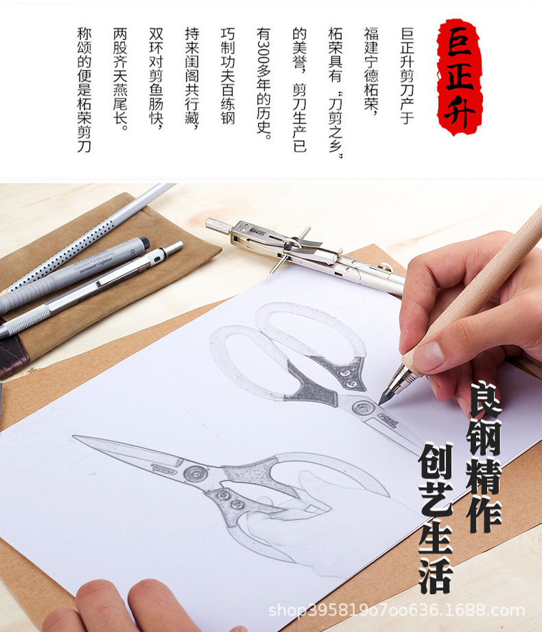 • 산업용 가위 [검은색 손잡이와 흰색 칼날]