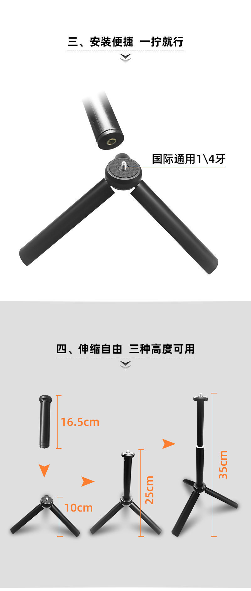 产品名称:桌面三脚架 迷你小支架 手机支架 可调三脚架 升缩三脚架 两节三脚架