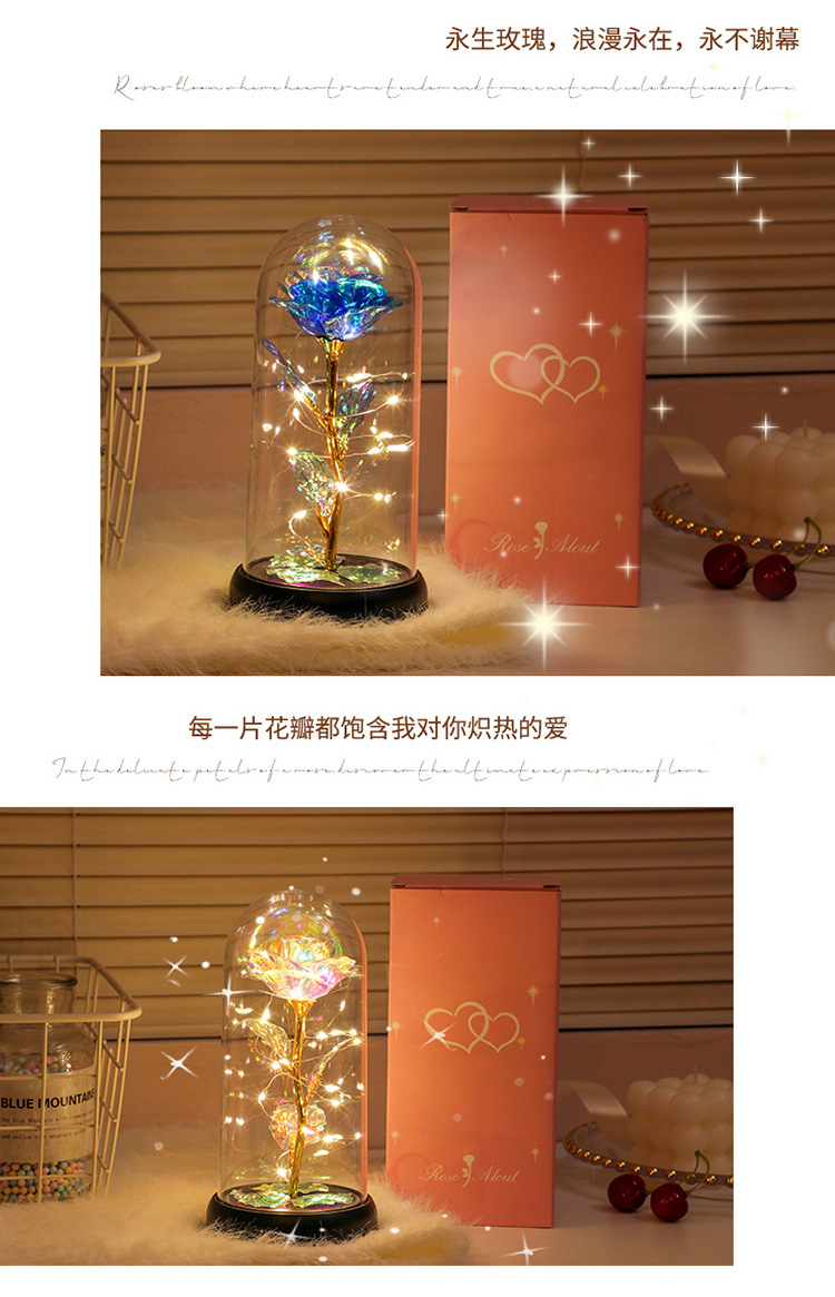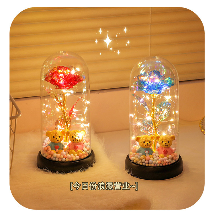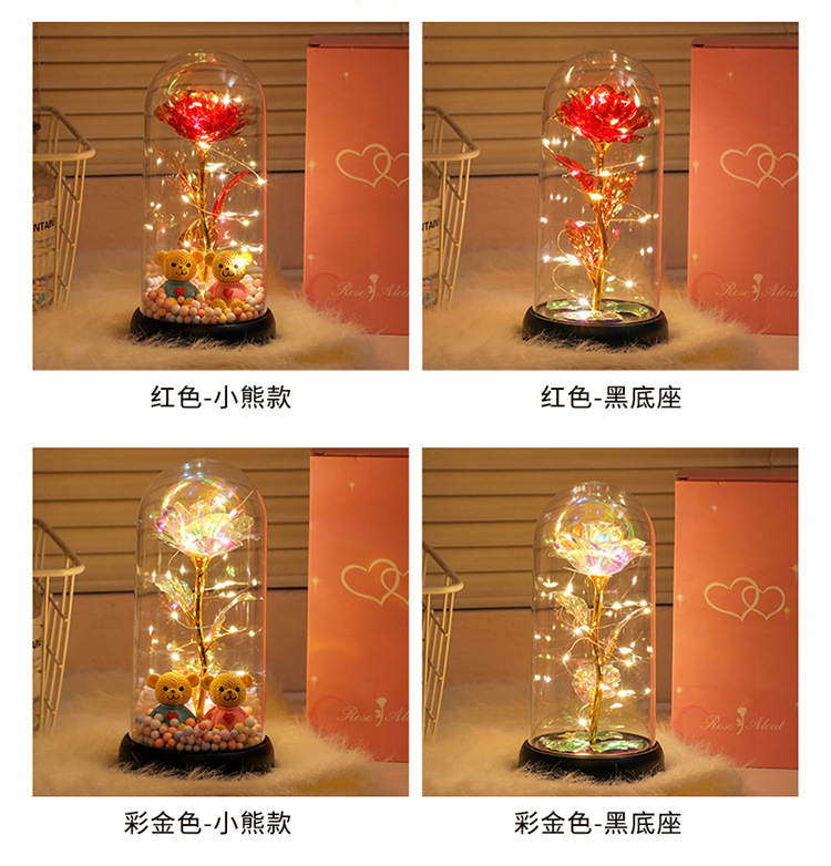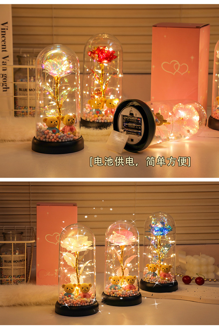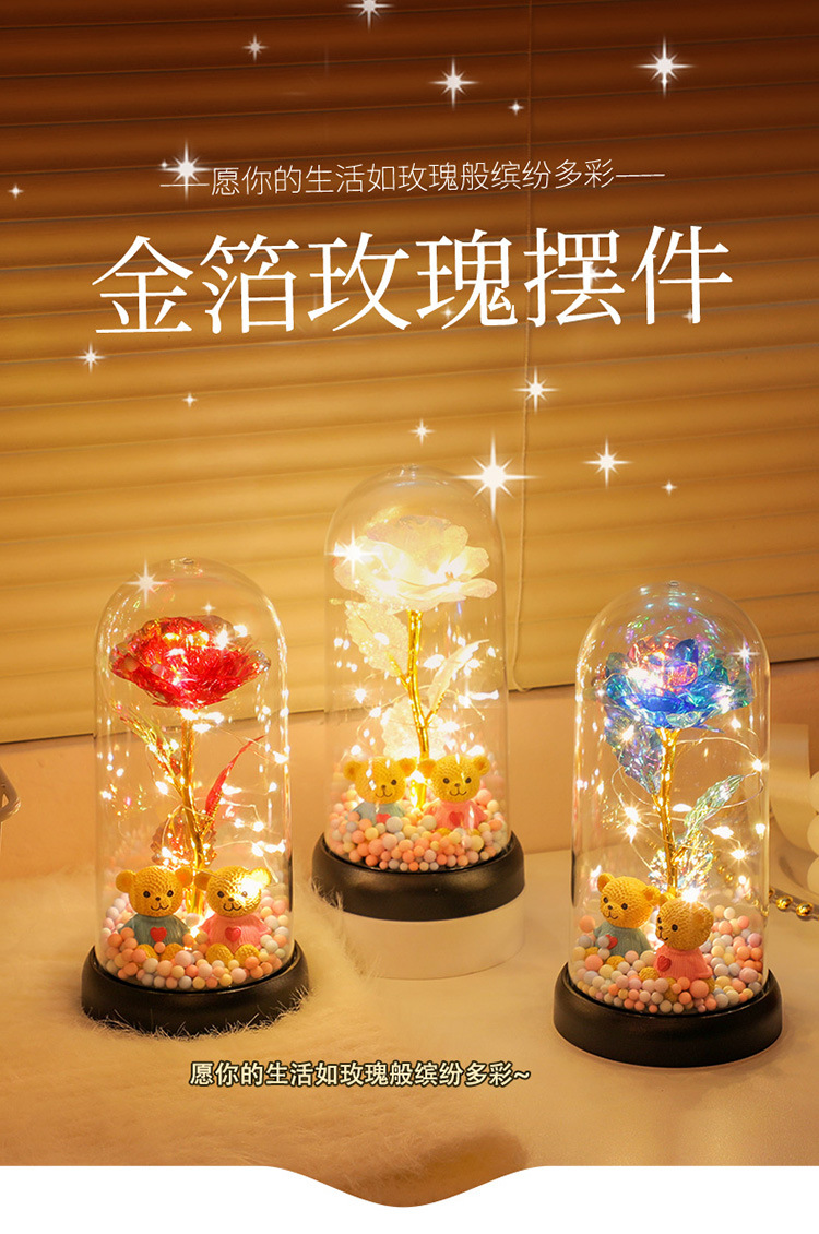 금박 장미꽃 발렌타인데이 선물, 영원한 꽃다발, 작은 야간 조명, 창의적인 장식품, 데스크탑 분위기 조명, 커플 선물스토어 가기