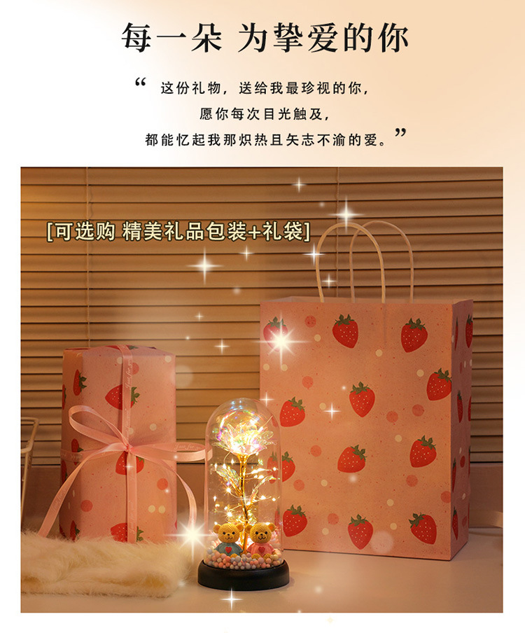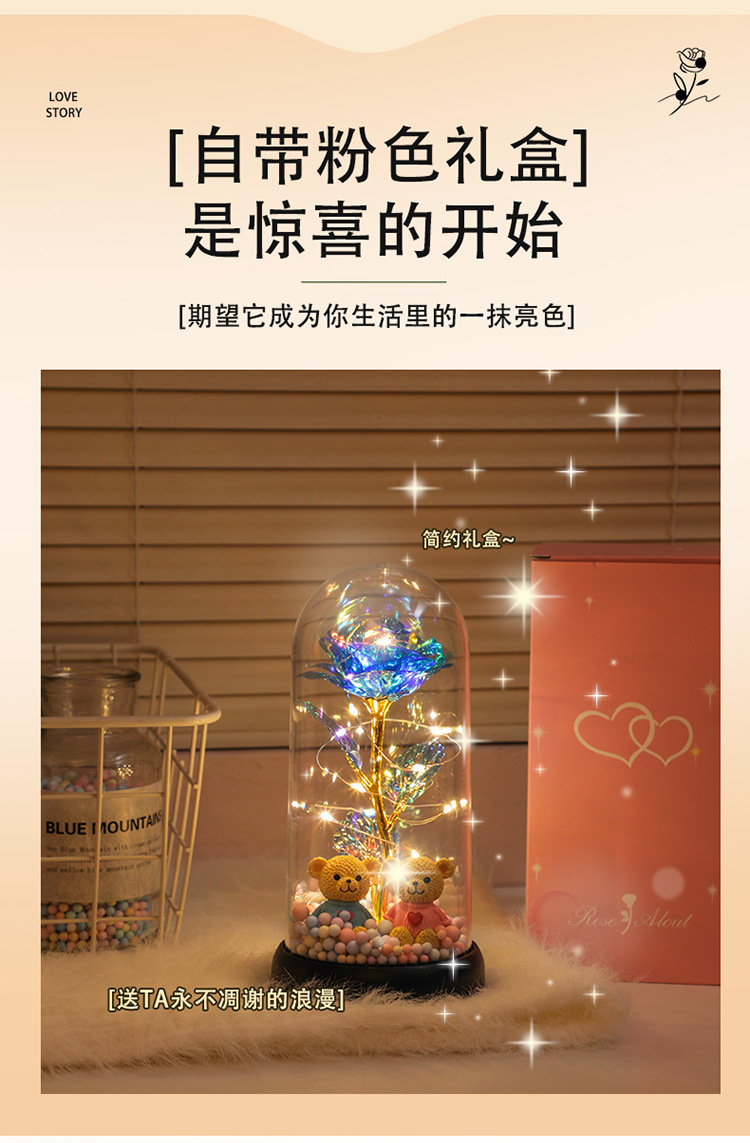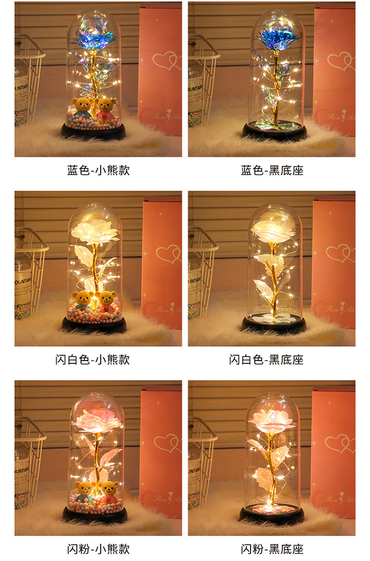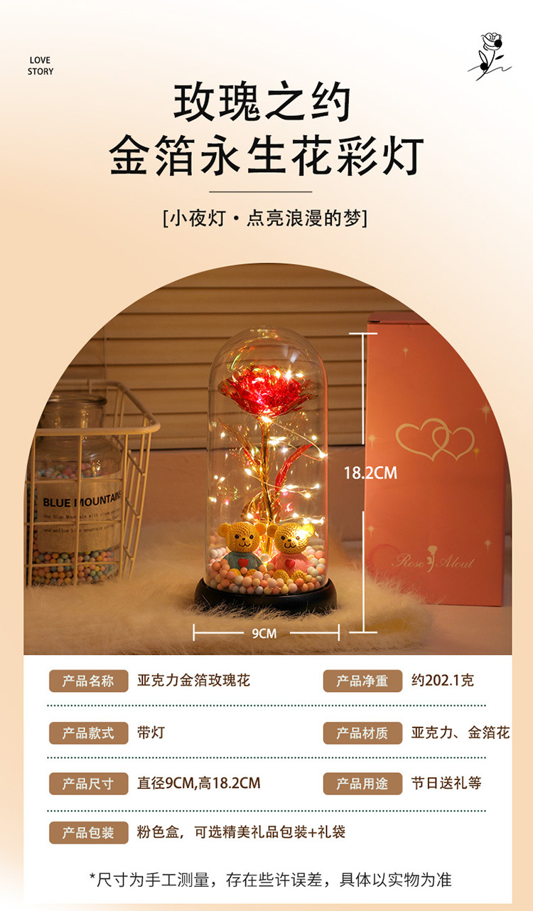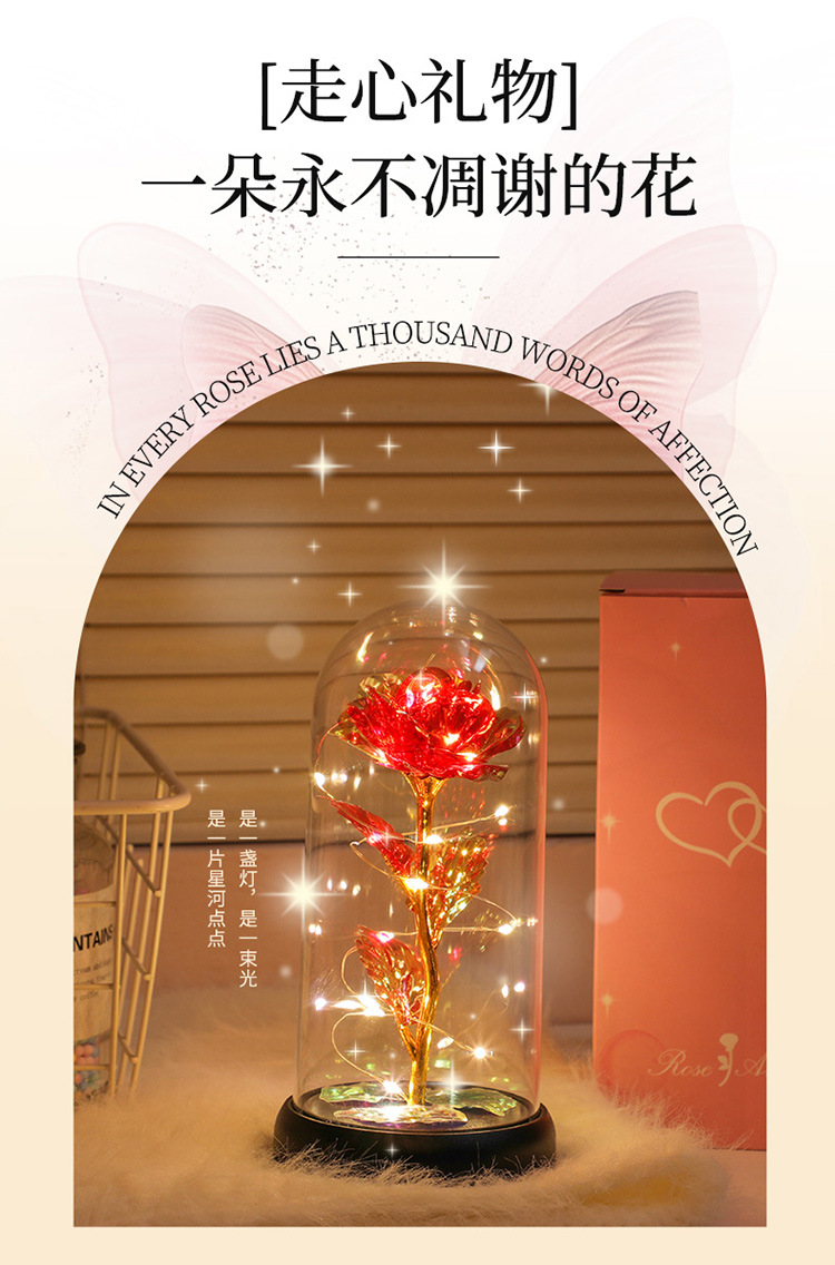 금박 장미꽃 발렌타인데이 선물, 영원한 꽃다발, 작은 야간 조명, 창의적인 장식품, 데스크탑 분위기 조명, 커플 선물스토어 가기
