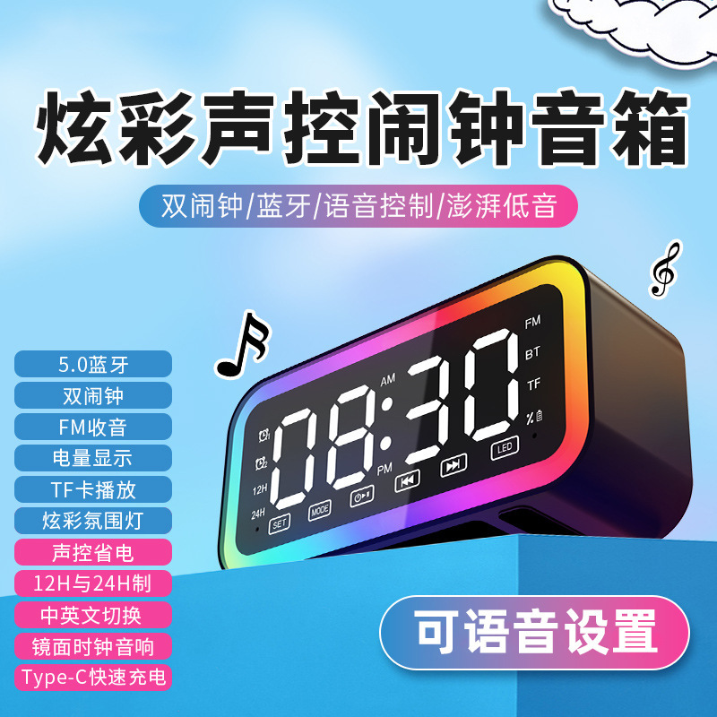 • [음성 설정] UG03 블랙 [블루투스 스피커 + 화려한 야간 조명 + 알람 시계 2 세트 + 사운드
