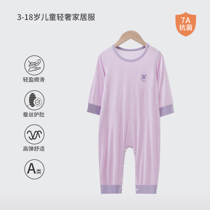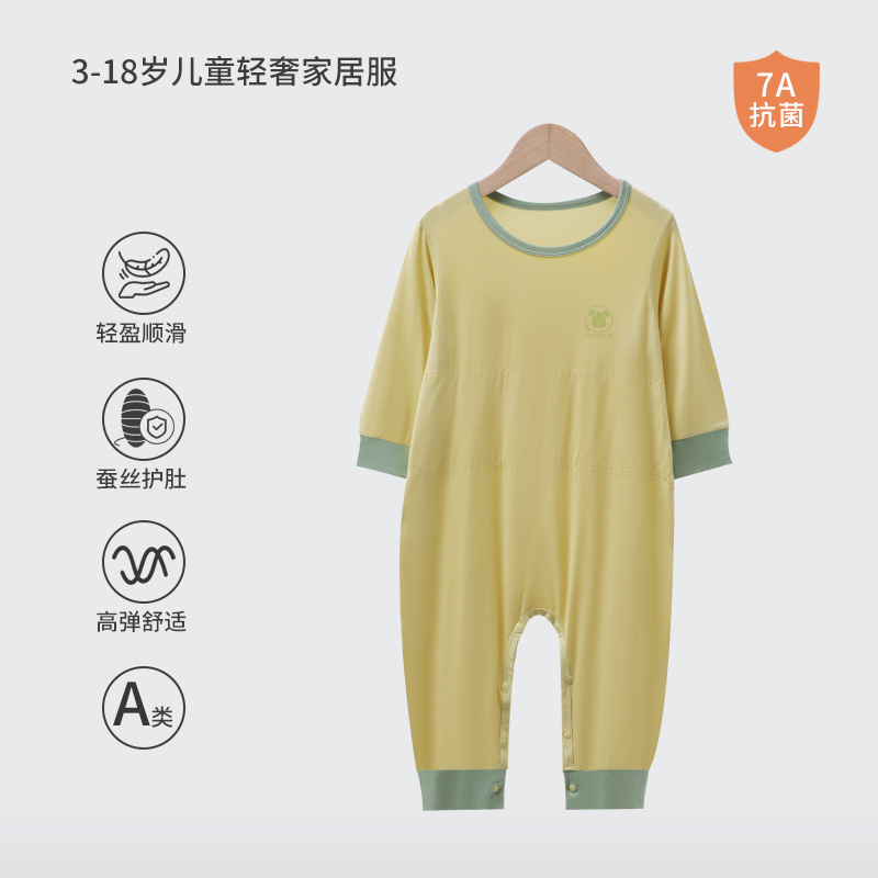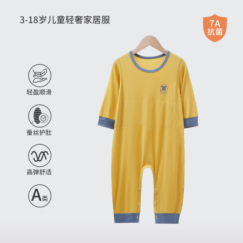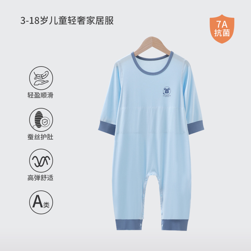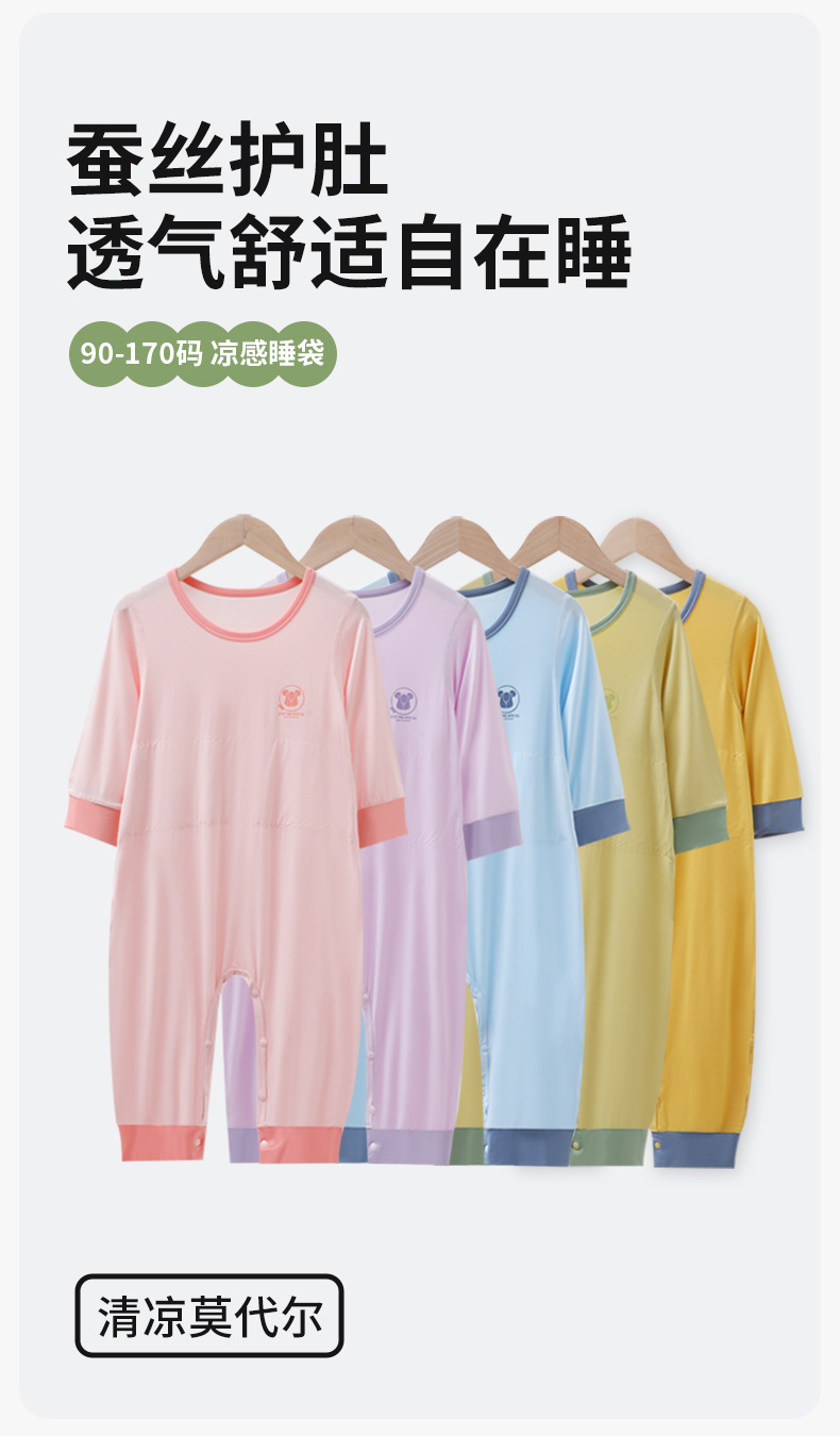 어린이 결합 된 잠옷 소년 모달 더블 레이어 배꼽 보호 안티 킥 침낭 소녀 아기 아이스 실크 파자마 홈 의류스토어 가기