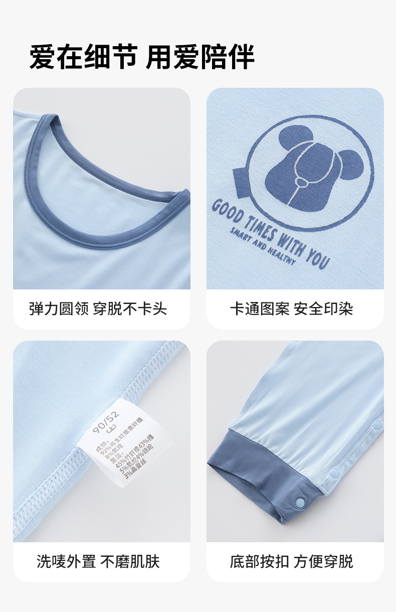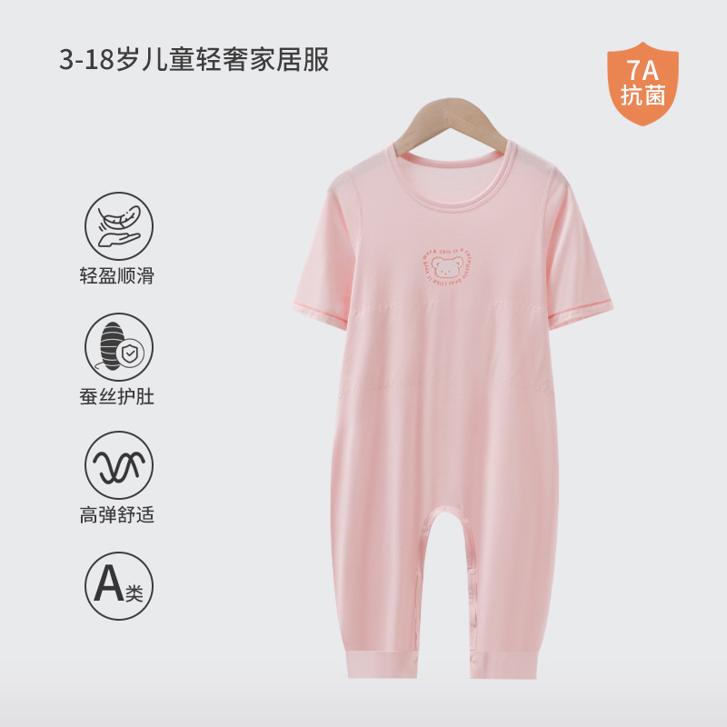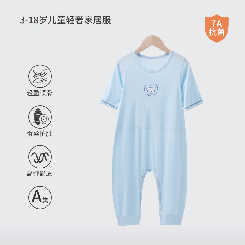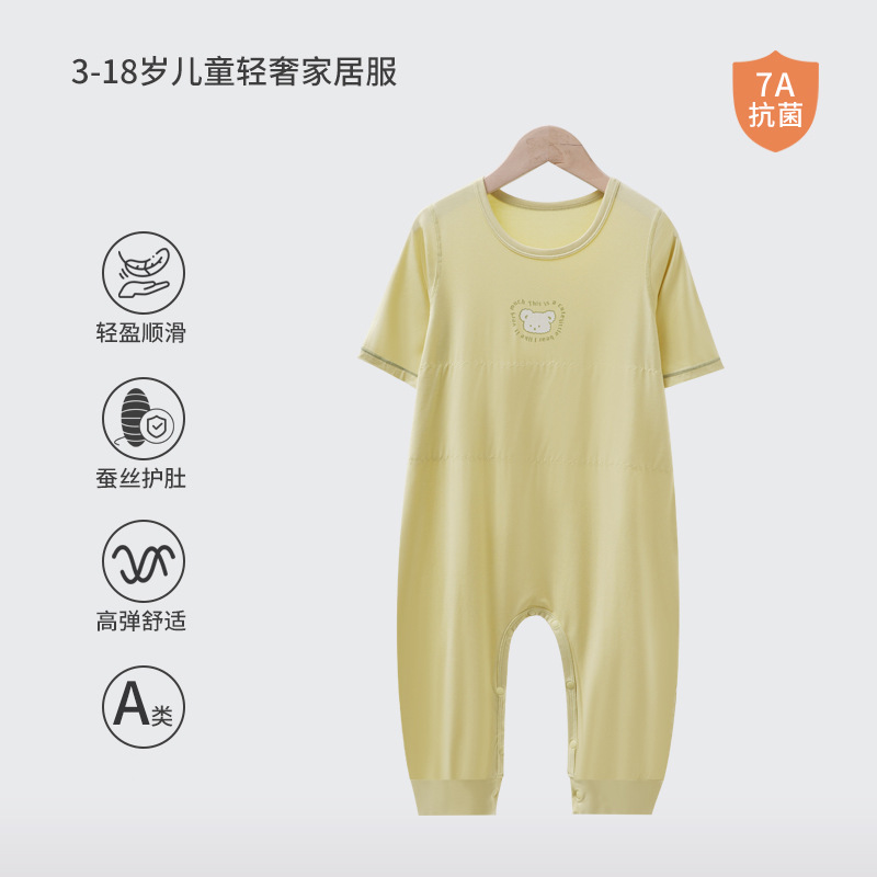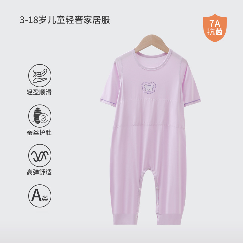 어린이 결합 된 잠옷 소년 모달 더블 레이어 배꼽 보호 안티 킥 침낭 소녀 아기 아이스 실크 파자마 홈 의류스토어 가기