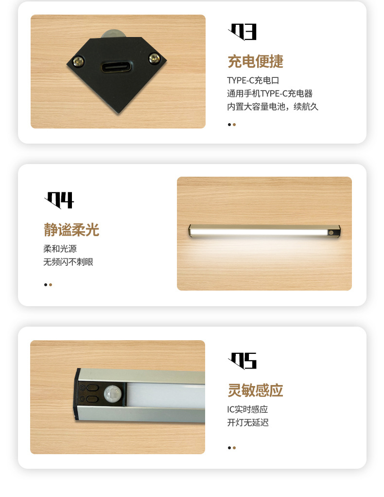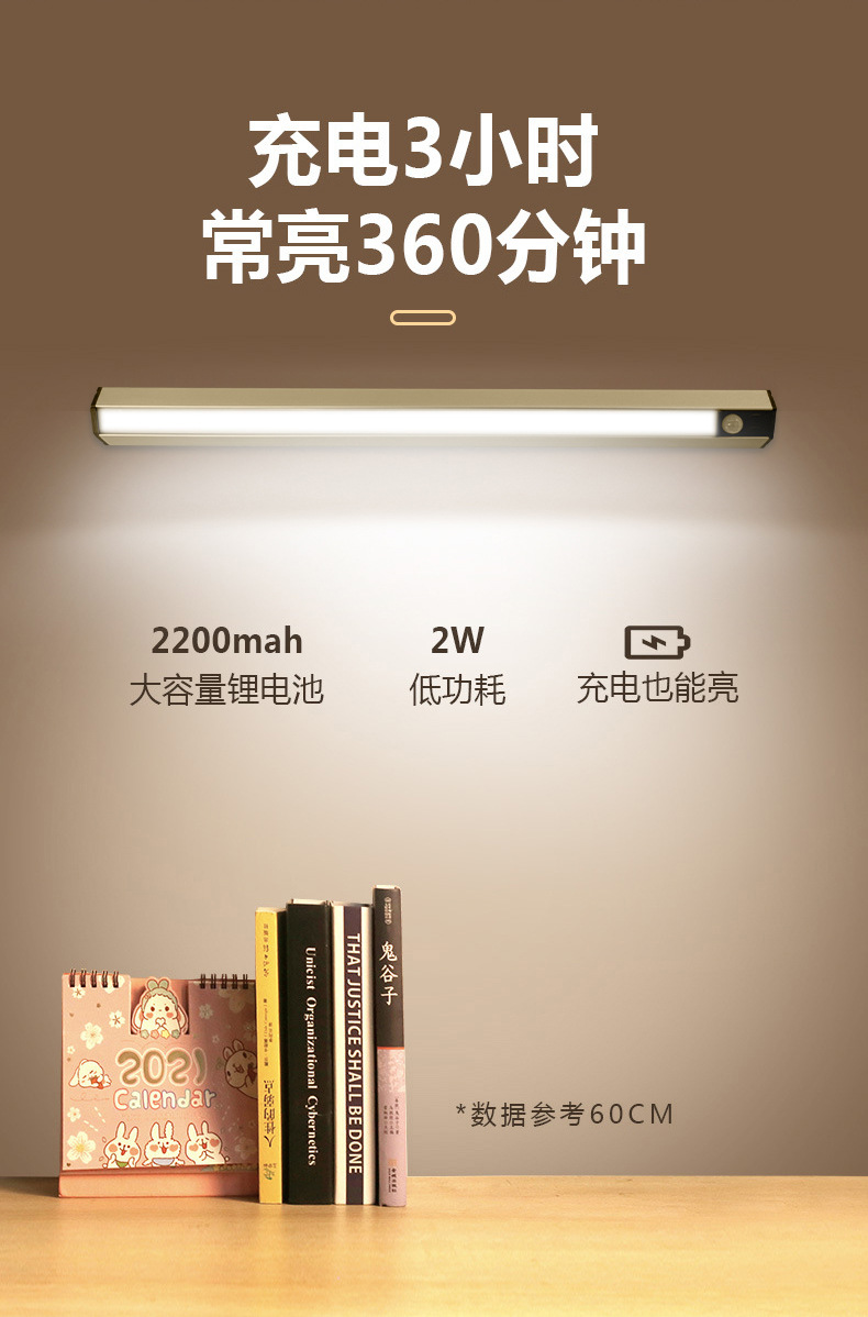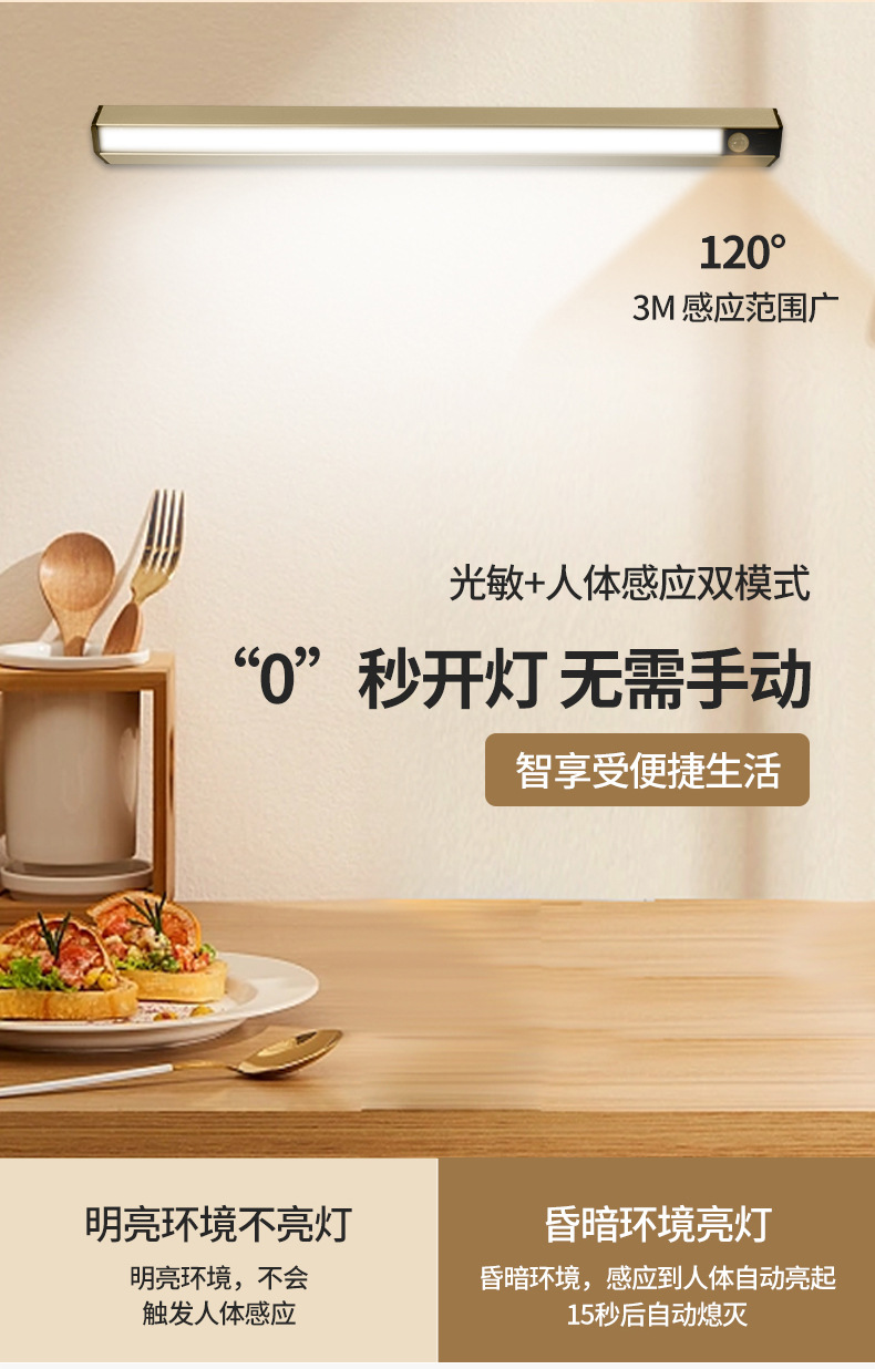 LED 인체 감지 야간등 스마트 충전식 가정용 침대 옆 옷장 무선 긴 스트립 램프 눈 보호 테이블 램프