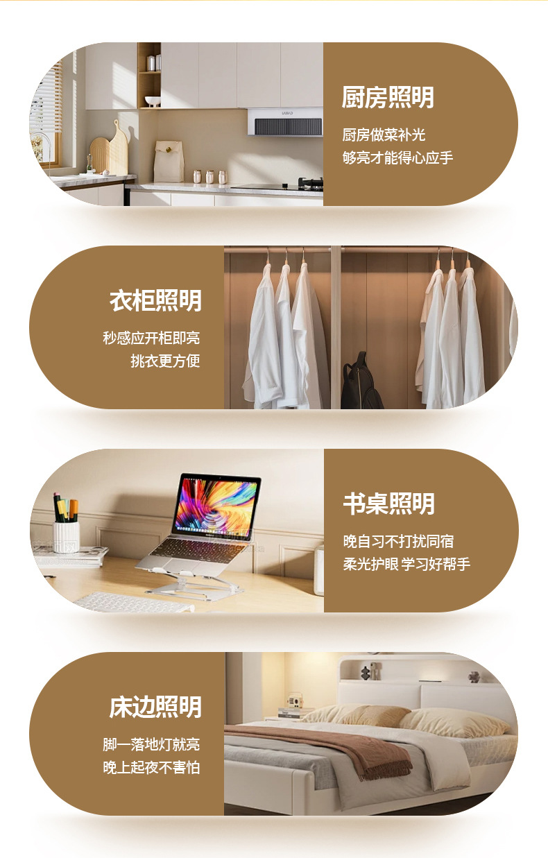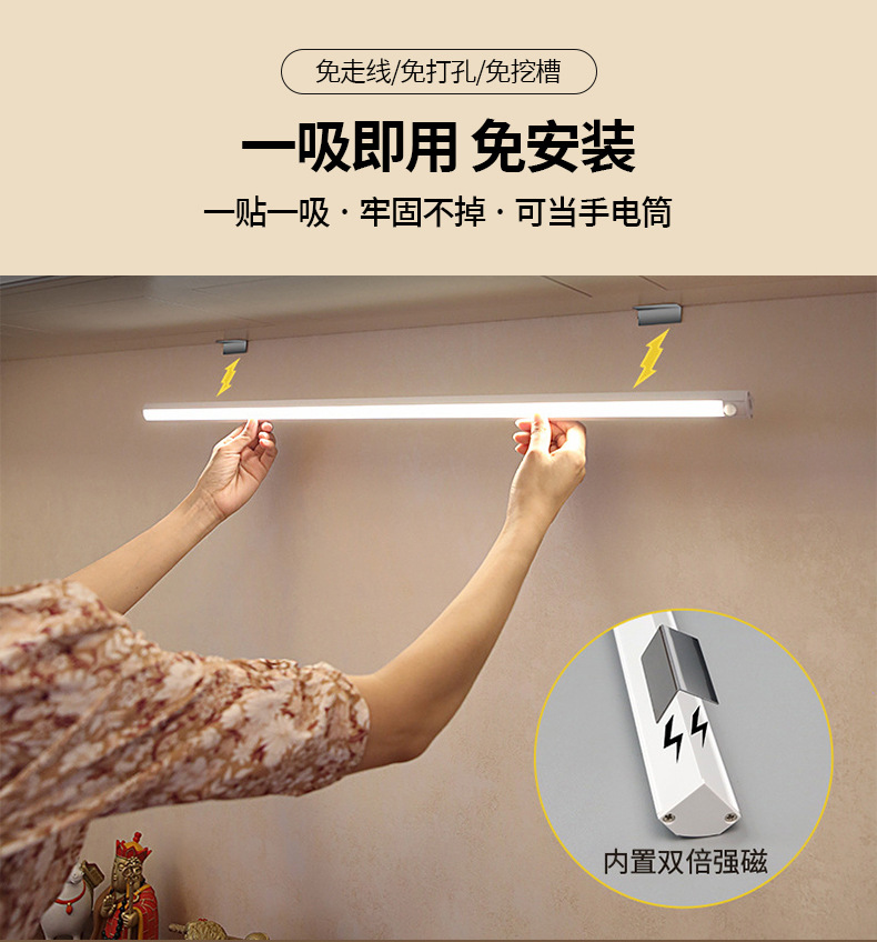 LED 인체 감지 야간등 스마트 충전식 가정용 침대 옆 옷장 무선 긴 스트립 램프 눈 보호 테이블 램프스토어 가기