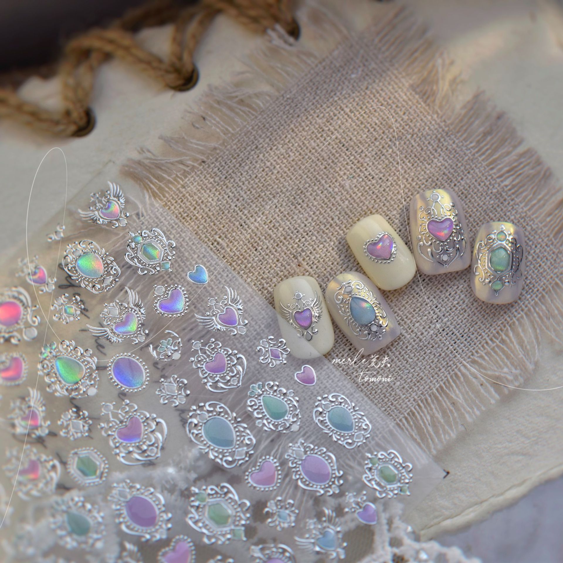 Tomoni Gilded 네일 아트 스티커 협력을 잃지 마십시오 고양이 눈 네일 스티커 3D 그라디언트 유럽 사랑 보석