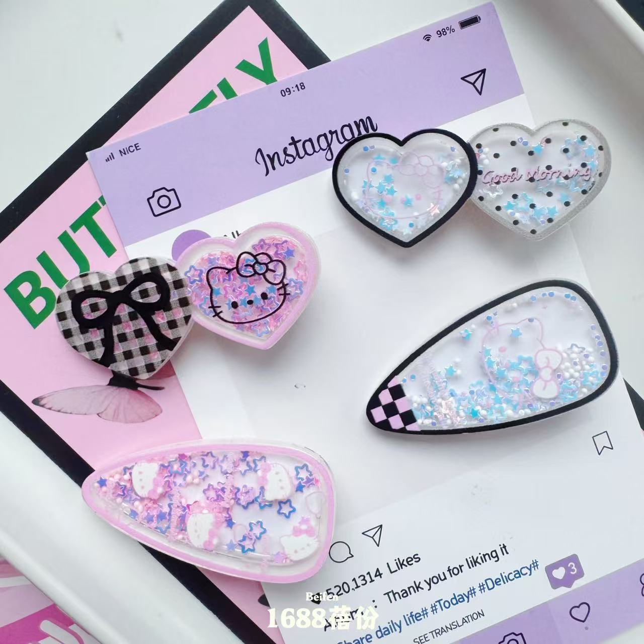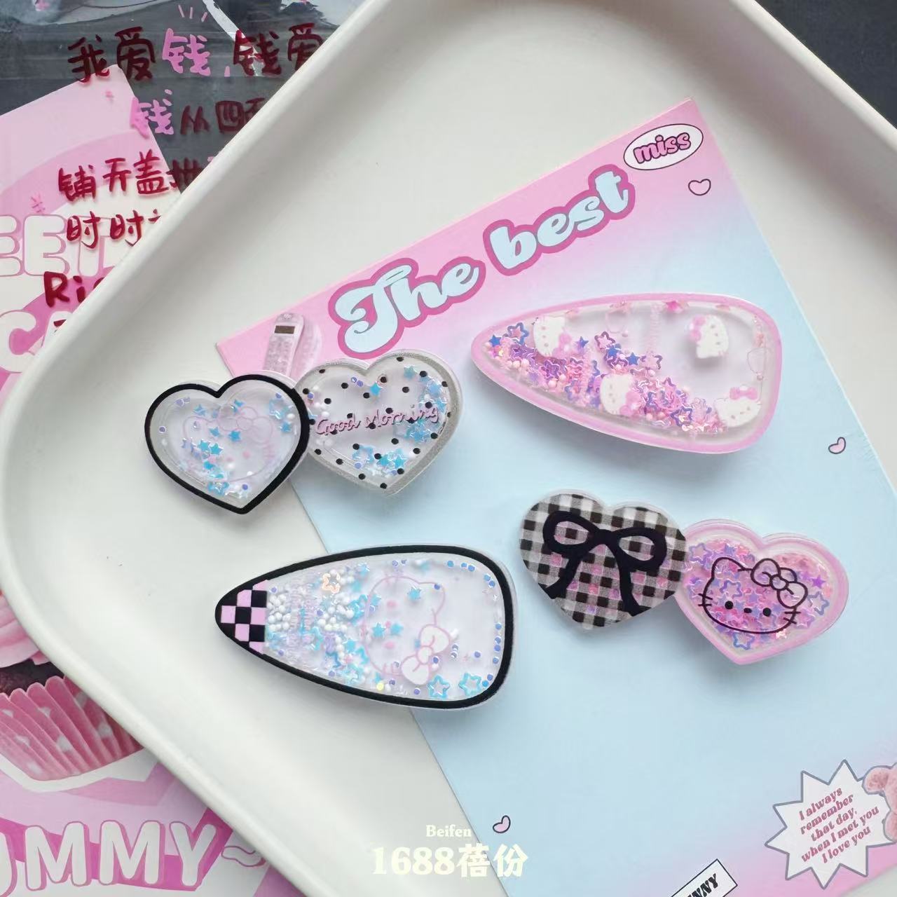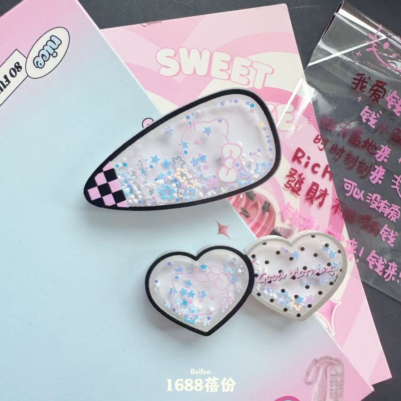 달콤하고 멋진 귀여운 고양이 스팽글 퀵 샌드 헤어 클립 소녀 사랑 흔들 오리 지폐 클립 어린이 머리핀 헤어 액세서리