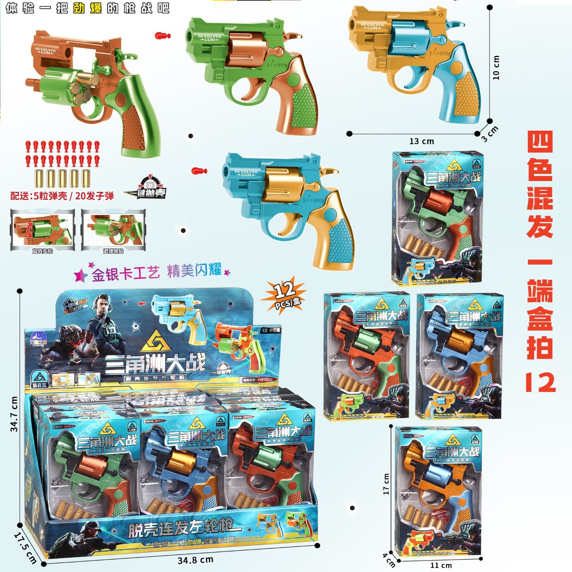 • 트라이앵글 리볼버 소프트 총알 총 [한쪽 끝에 12발]