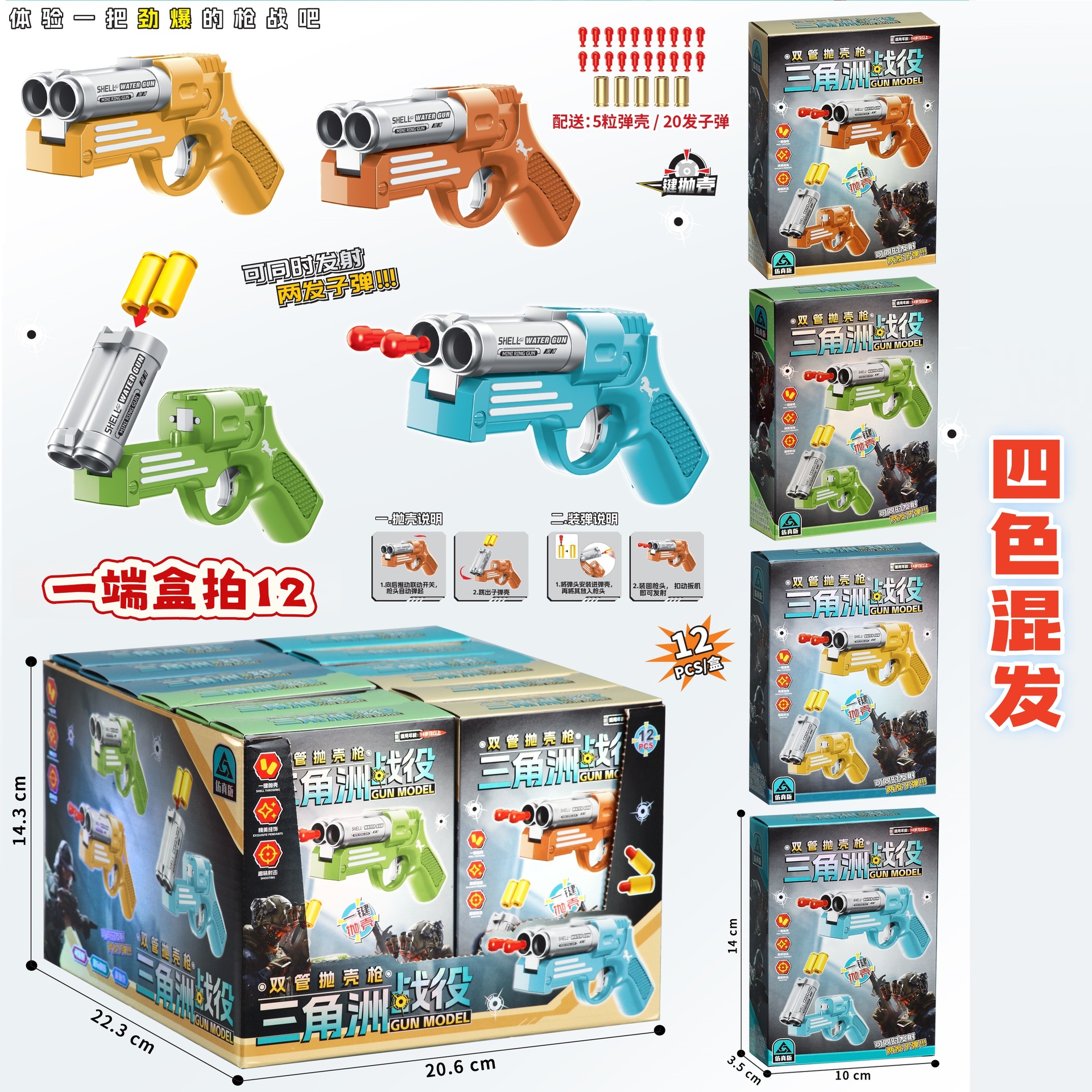 • 이중 배럴 쉘 투척 소프트 총알 총 [한쪽 끝에 12발]