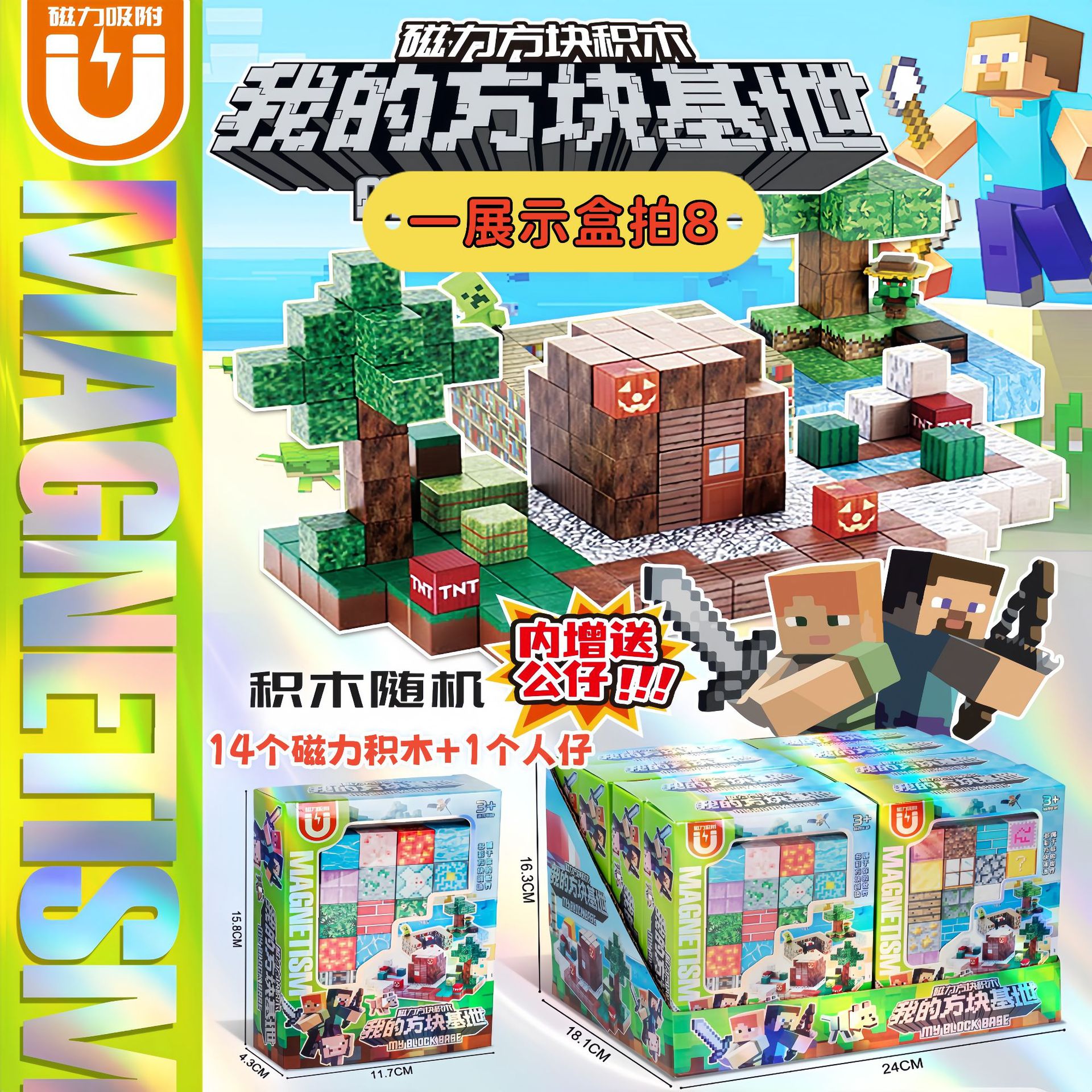 • 마인 큐브 베이스 마그네틱 큐브 3 + 야광무기 1 + 인형 1 [한쪽 끝에 8발]
