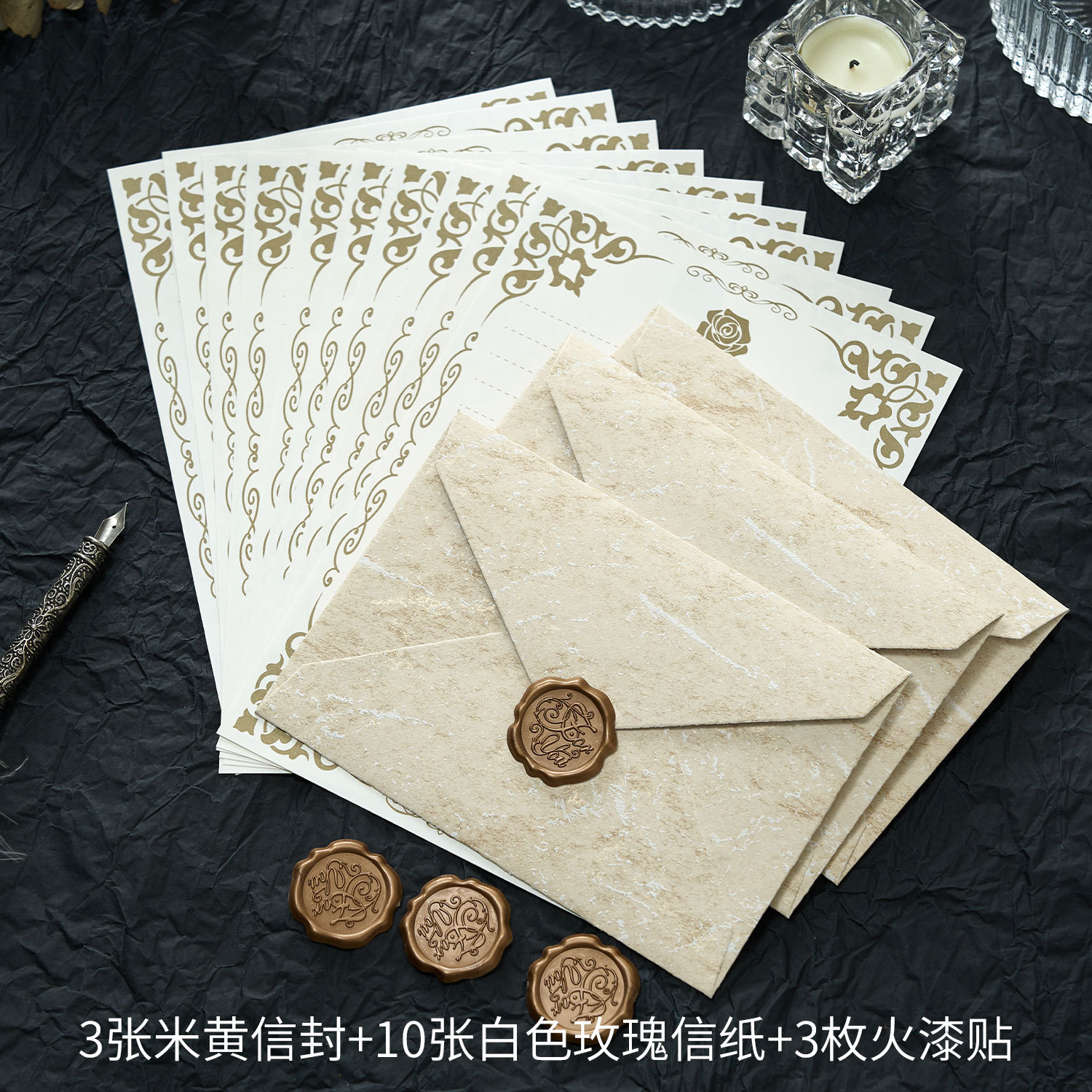 • 베이지 봉투 3장 + 크라프트 장미 편지지 10장 + 페인트 스티커 3장