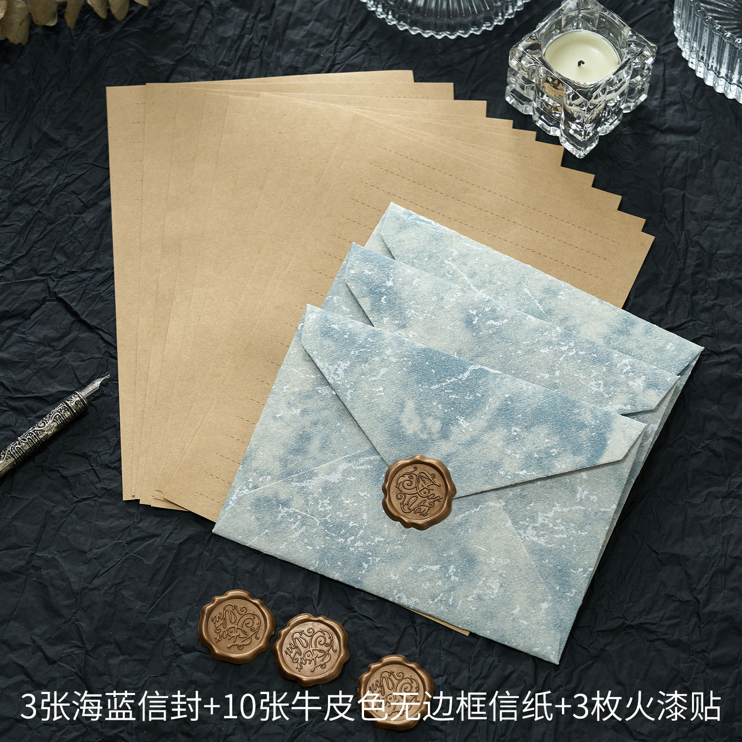 • 오션 블루 봉투 3장 + 크라프트 로즈 편지지 10장 + 불꽃 페인트 스티커 3장