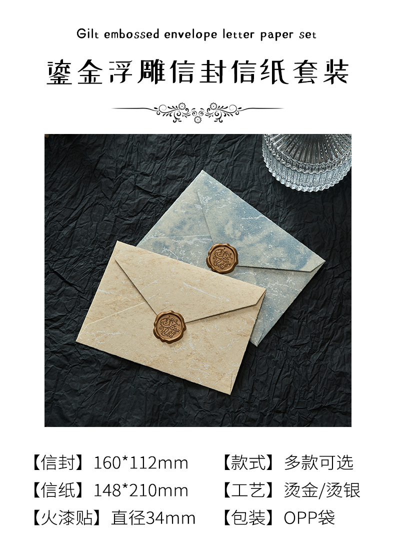 아침 거품 금박 봉투 레터 헤드 세트 채널 스타일 구호 질감 필기 사랑 편지 발렌타인 데이 페인트 봉투스토어 가기