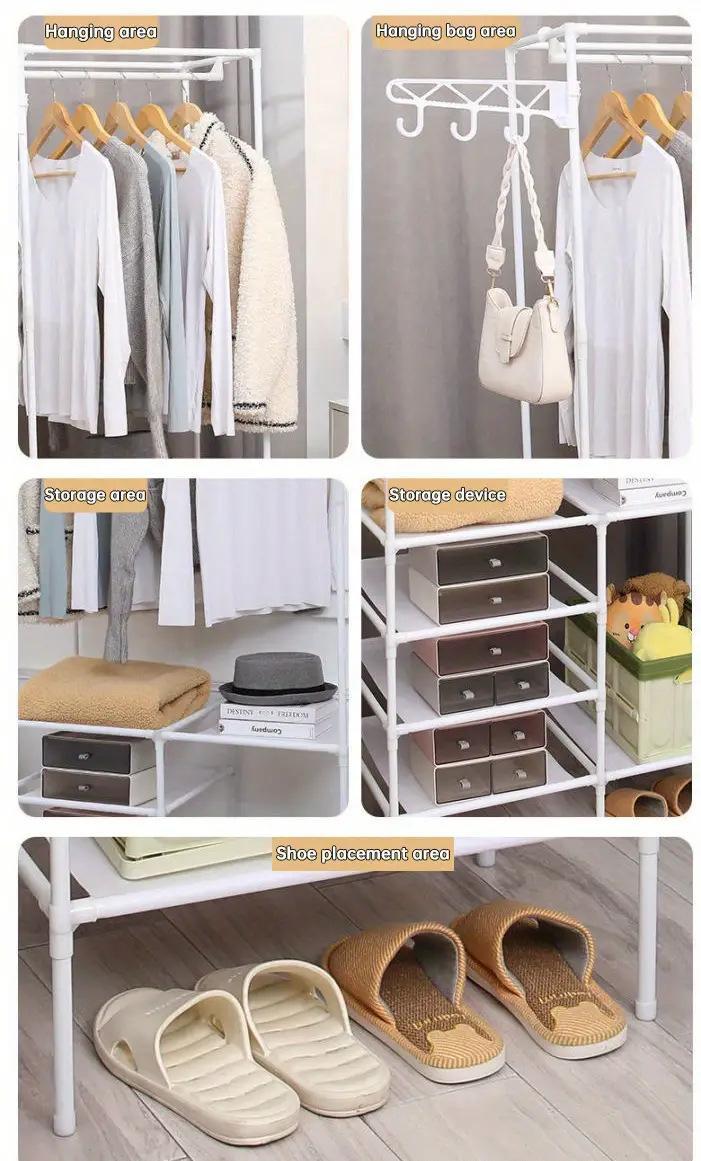 옷걸이, 옷을 걸 수 있는 이중 행, 간단한 옷걸이, 수납 선반, 신발장, 옷걸이, 수납 및 정리, 간단한 옷장스토어 가기