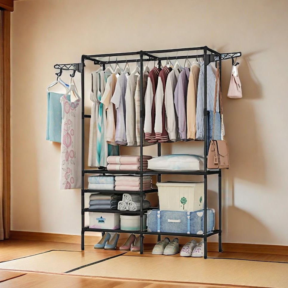 옷걸이, 옷을 걸 수 있는 이중 행, 간단한 옷걸이, 수납 선반, 신발장, 옷걸이, 수납 및 정리, 간단한 옷장