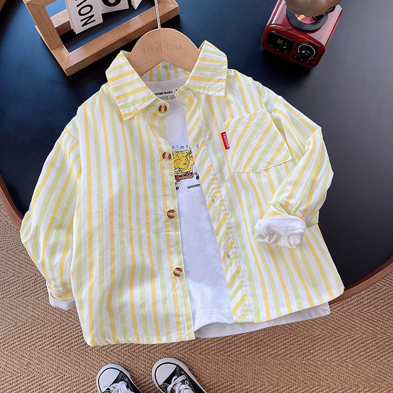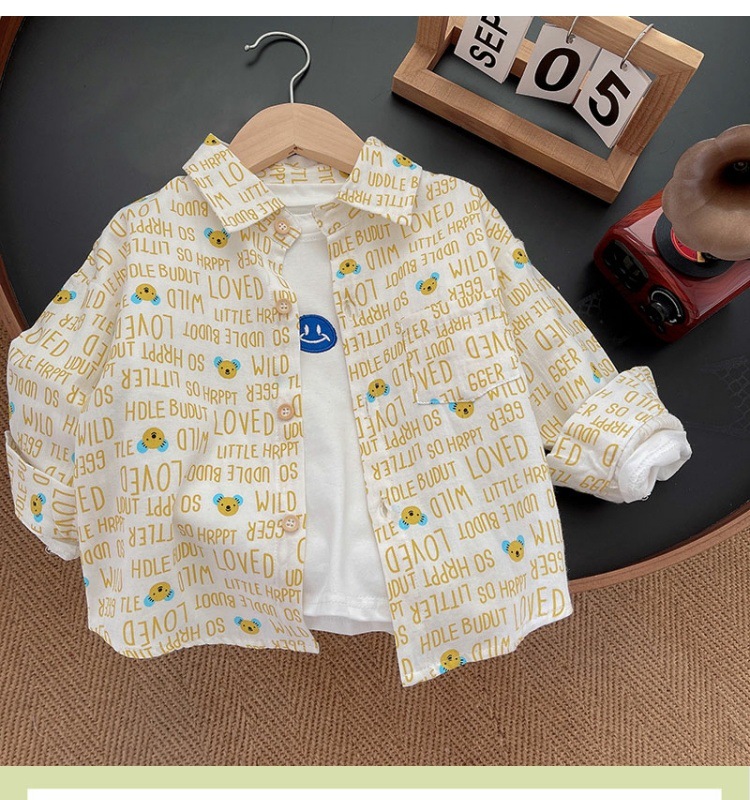 아기 유행 긴팔 셔츠 소년 순수 코튼 옷깃 만화 셔츠 2025 새로운 아동 의류 아동 가을상의스토어 가기