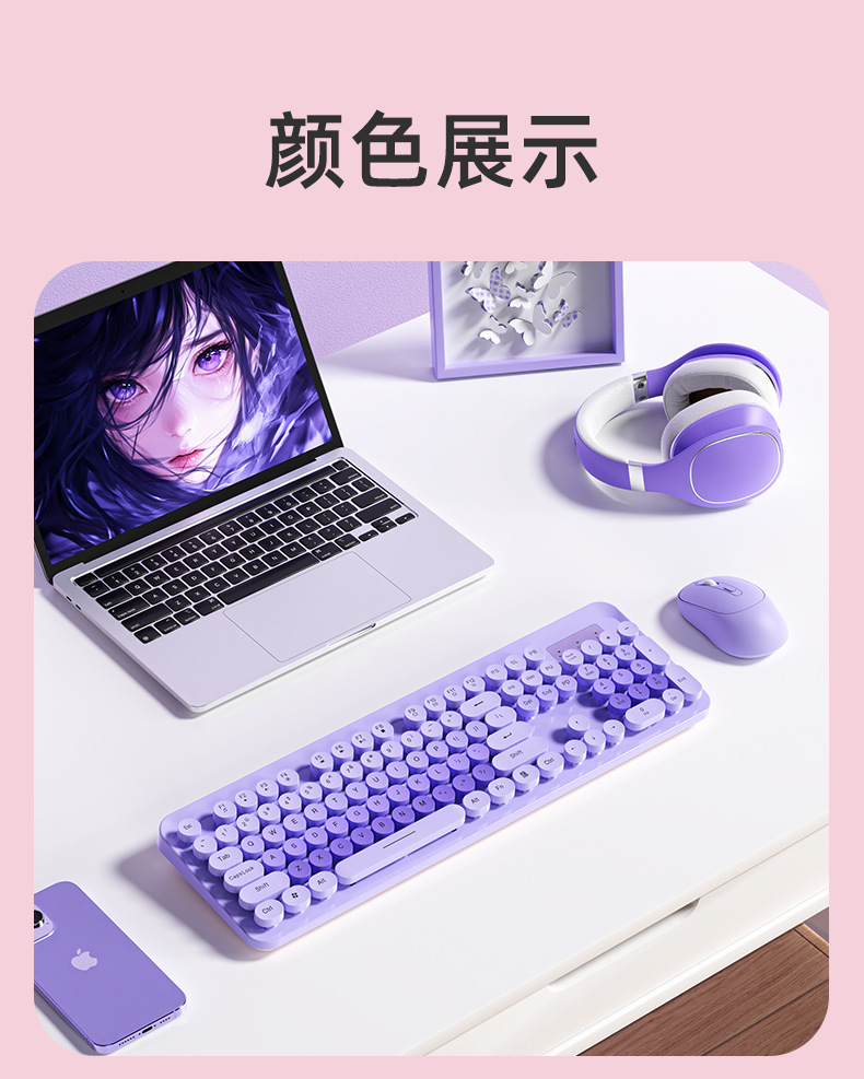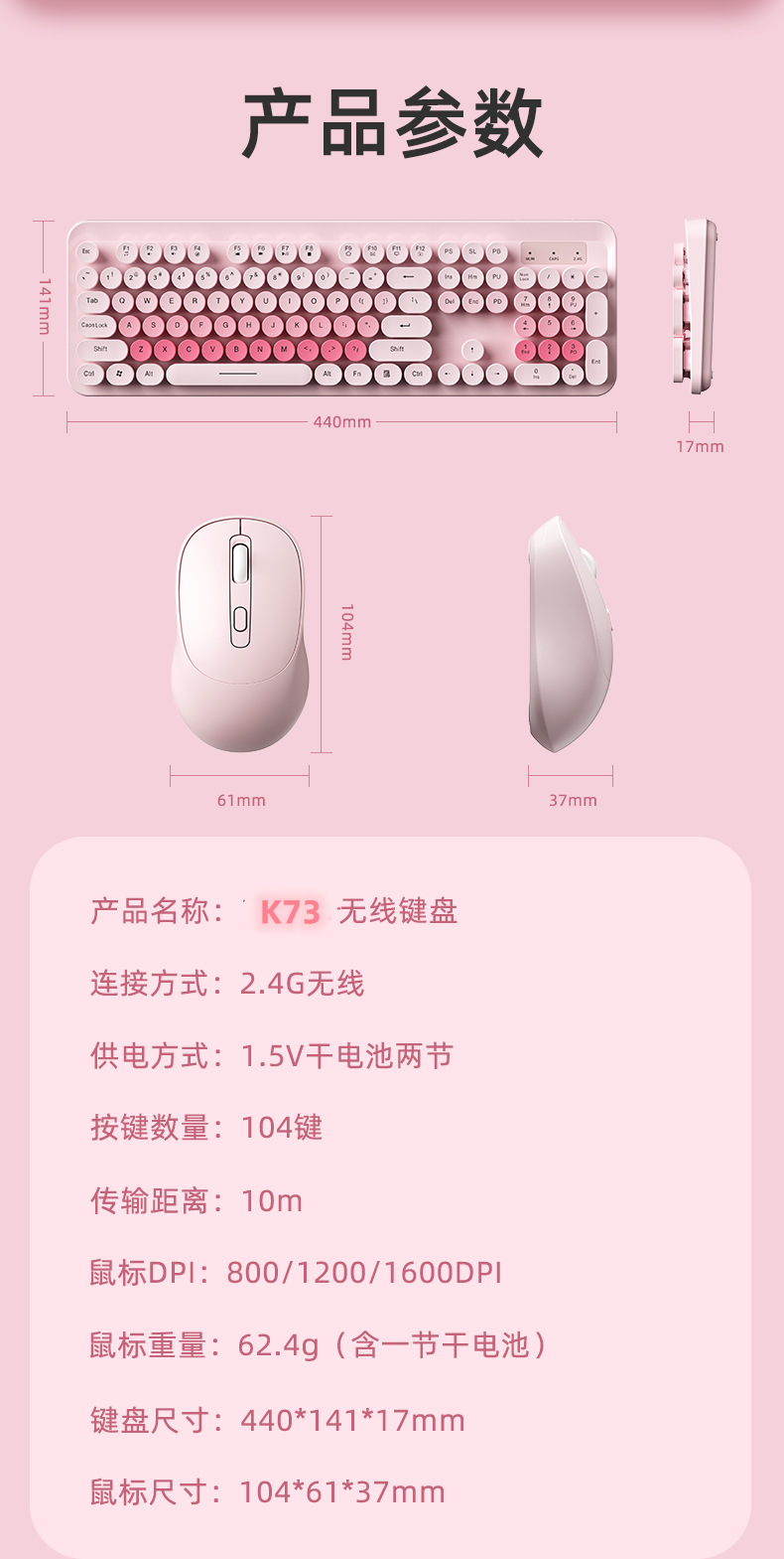 새로운 K73 펑크 레트로 라운드 키 혼합 컬러 소녀 사무실 빛 톤 무선 키보드 마우스 세트 컴퓨터 키보드