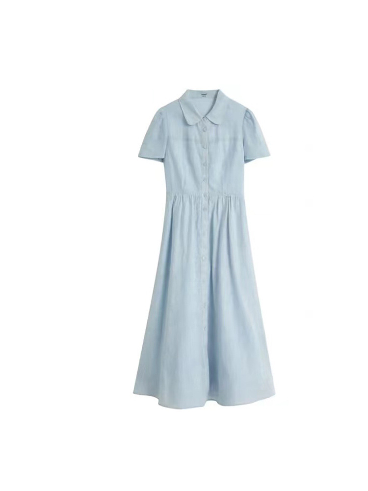 재고 있음 장루오난 동일 스타일 고급 프렌치 스타일의 인형 칼라 원피스 여성용 2025년 여름 신상품 퍼프 슬리브 드레스스토어 가기