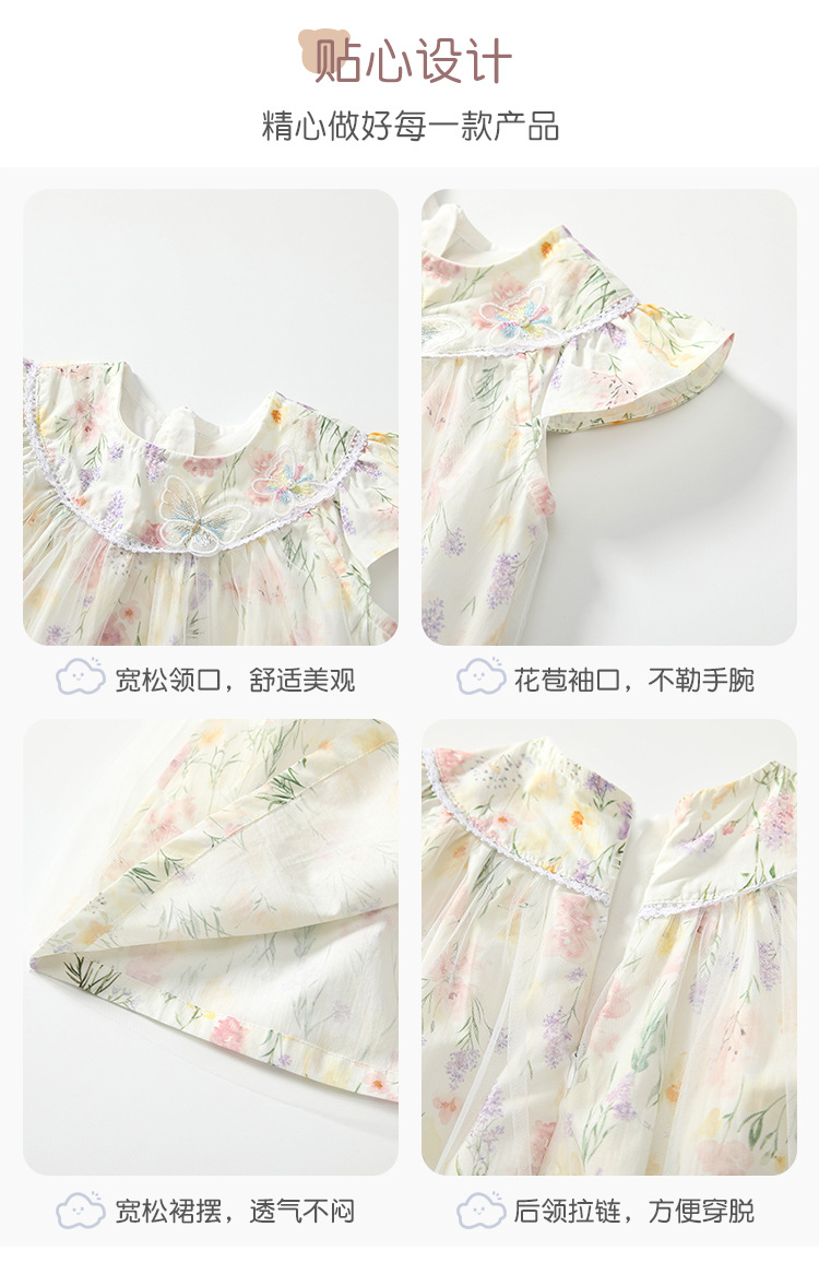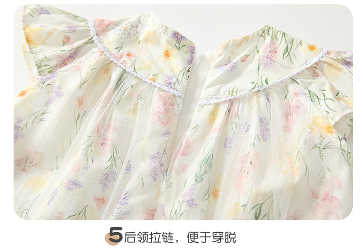 소녀 2025 새로운 원피스 어린이 외국 스타일 메쉬 공주 스커트 한 세대의 소녀 꽃 무늬 얇은스토어 가기