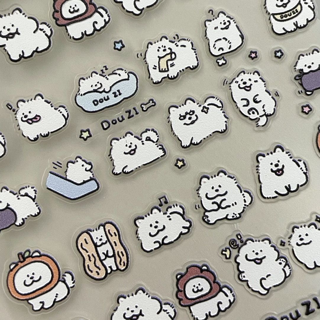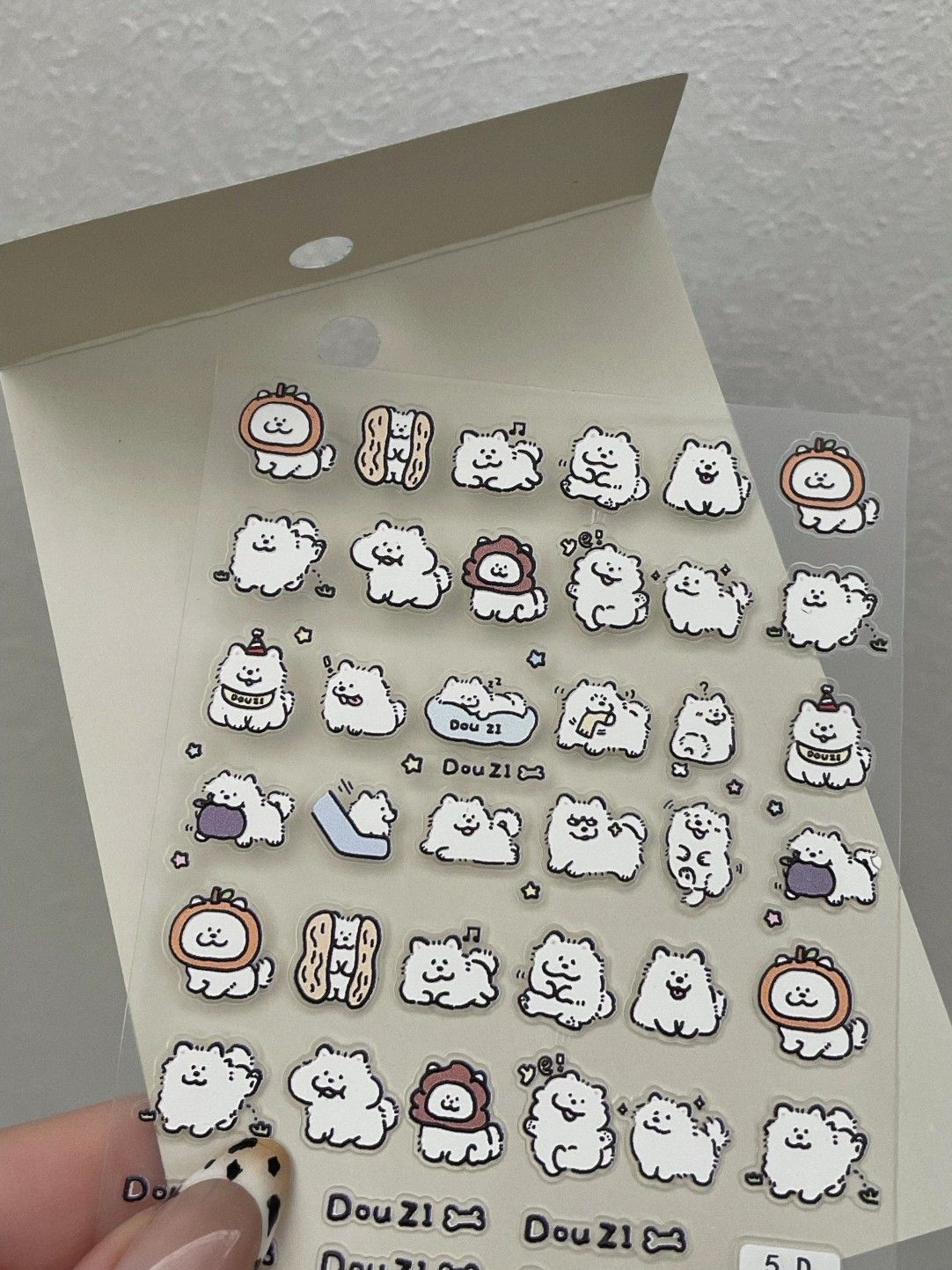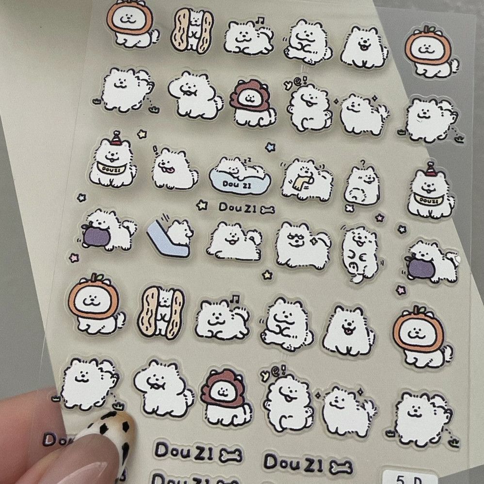Ins 스타일 부드럽고 귀여운 게으른 양각 네일 아트 스티커 입체 흰색 강아지 ccd 휴대 전화 케이스 핸드북 만화스토어 가기