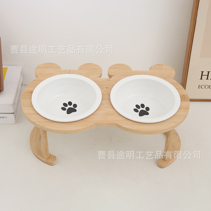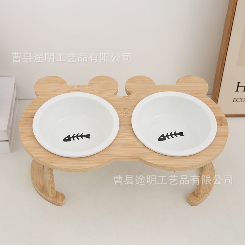 단단한 나무 고양이 그릇 애완 동물 피더 더블 그릇 반대로 뒤집히는 투인원 보호 자궁 경부 나무 고양이 먹이 그릇 랙