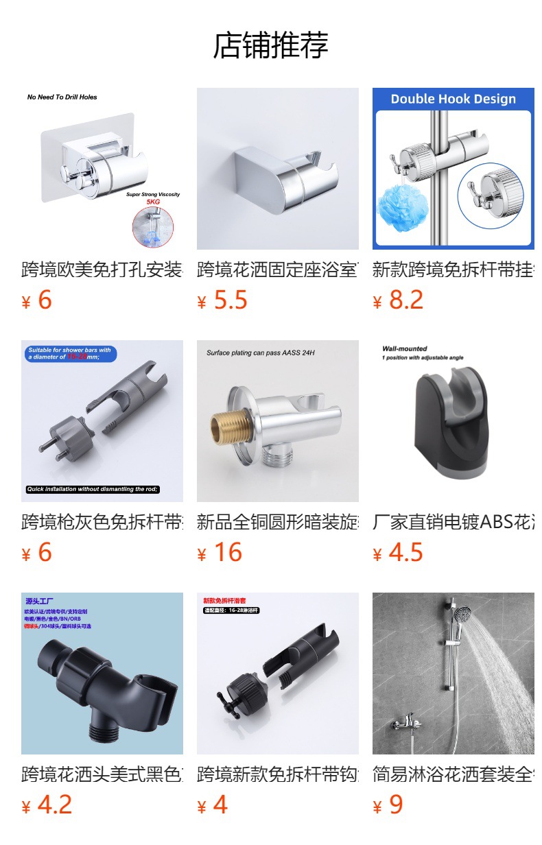 구멍이 없는 샤워 브래킷, 욕실 샤워 헤드, 조절 가능한 걸이형 레인 흡입 컵 액세서리, 범용 고정 베이스스토어 가기