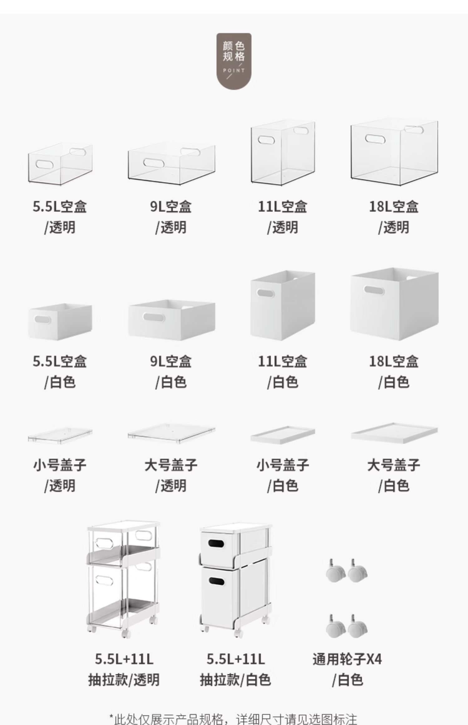 • 투명 2종 세트 (5.5L+11L) * 1, 서랍식 - 폭 18CM