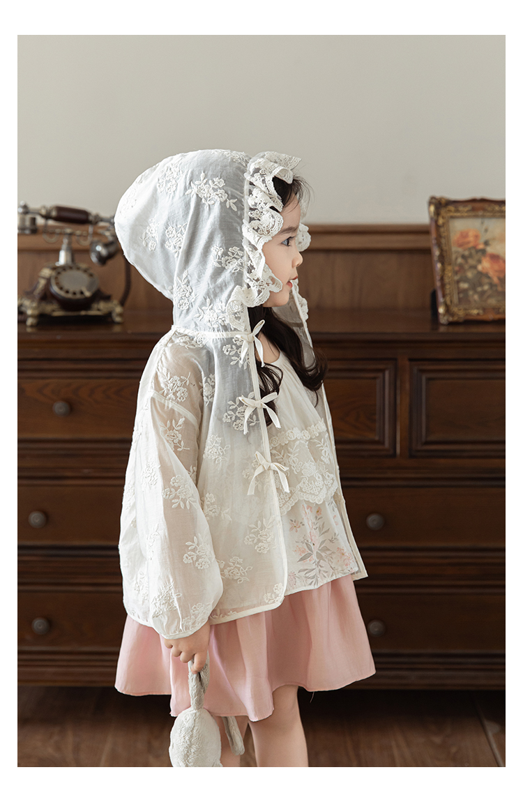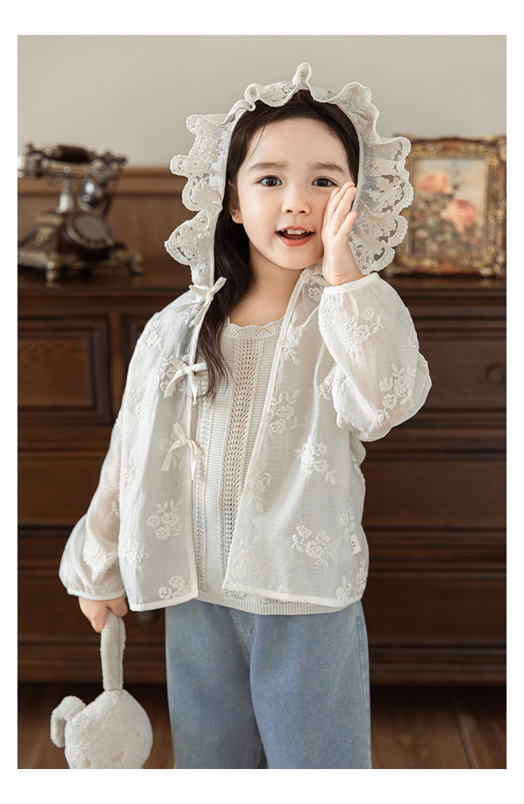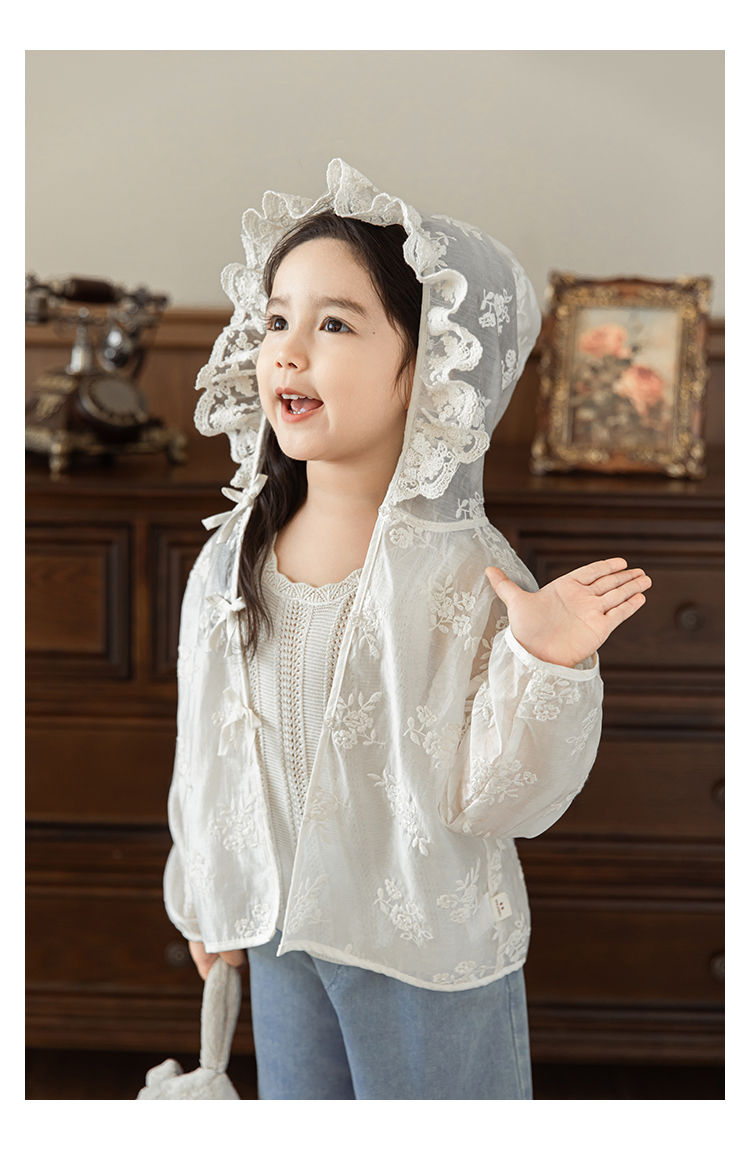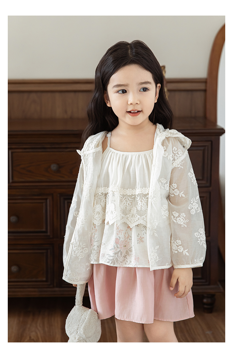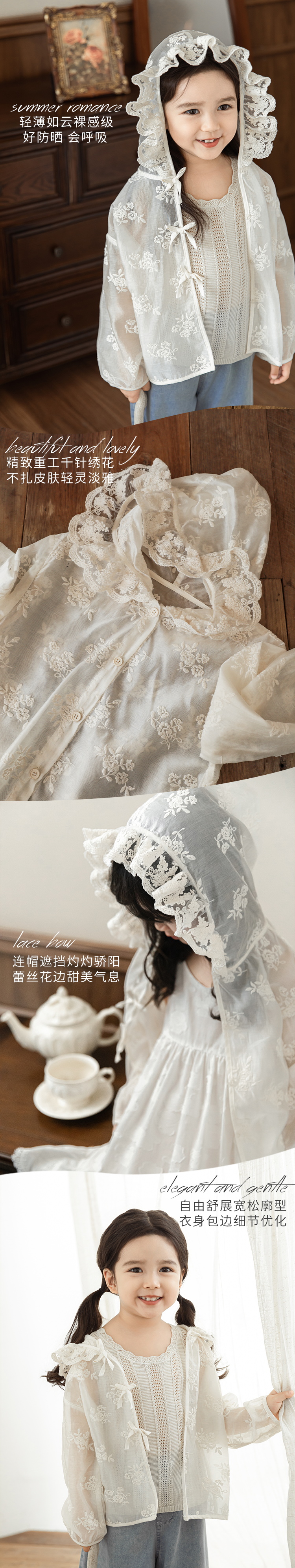 Wulibuyi 소녀 수 놓은 양산 재킷 2025 여름 어린이 달콤하고 귀여운 경량 통기성 후드 재킷 유행