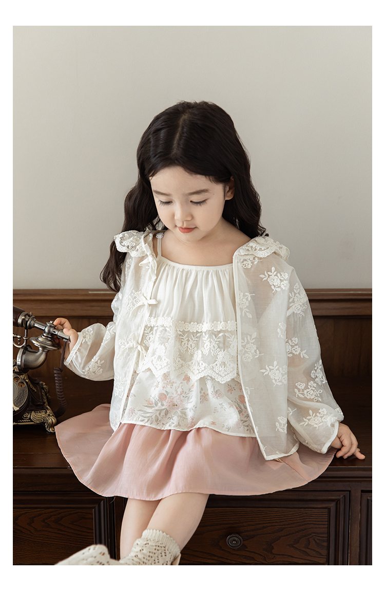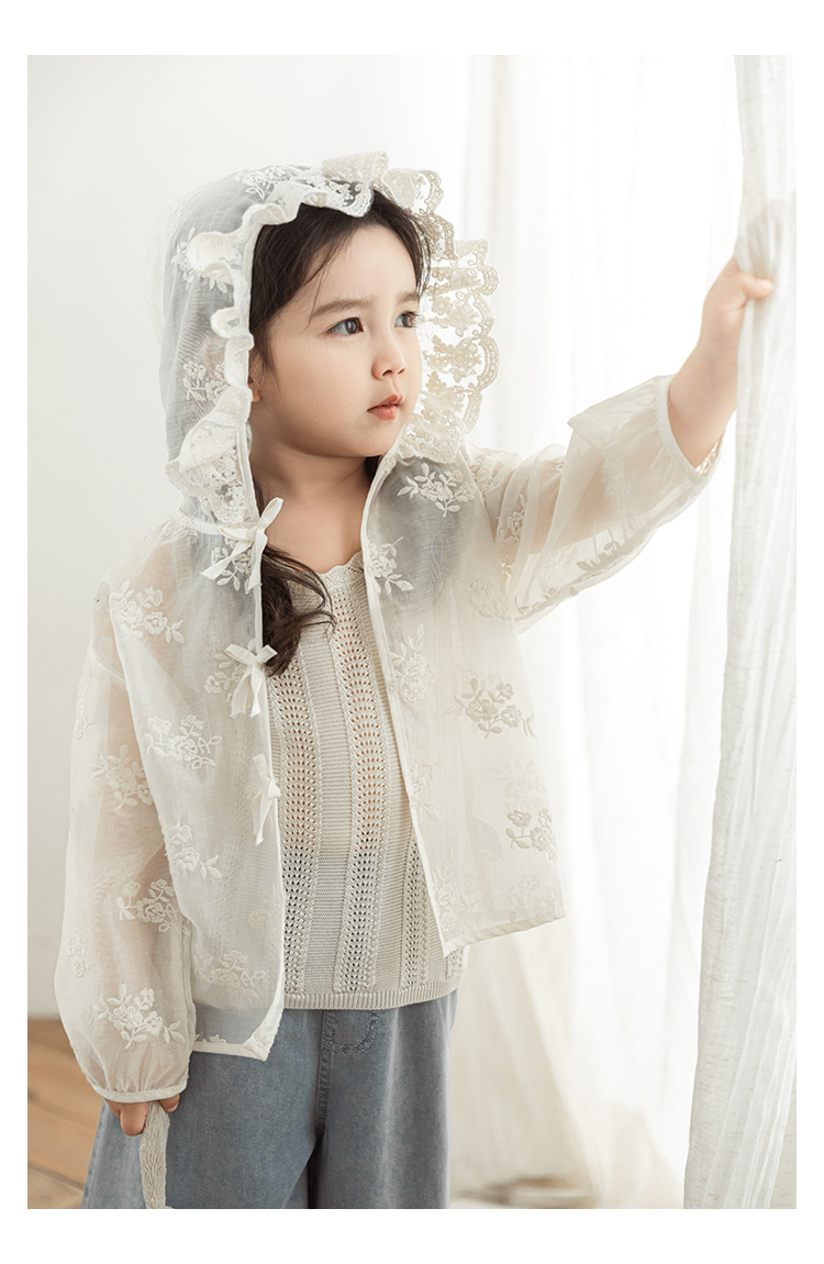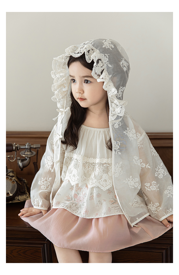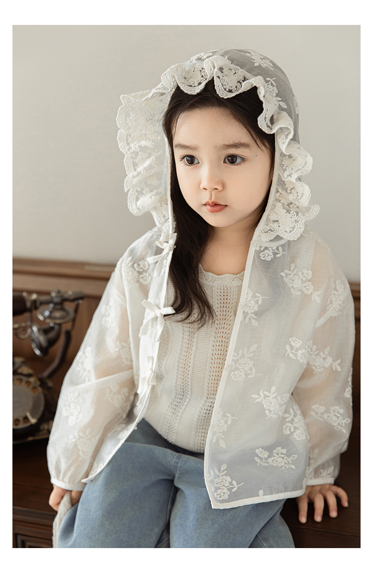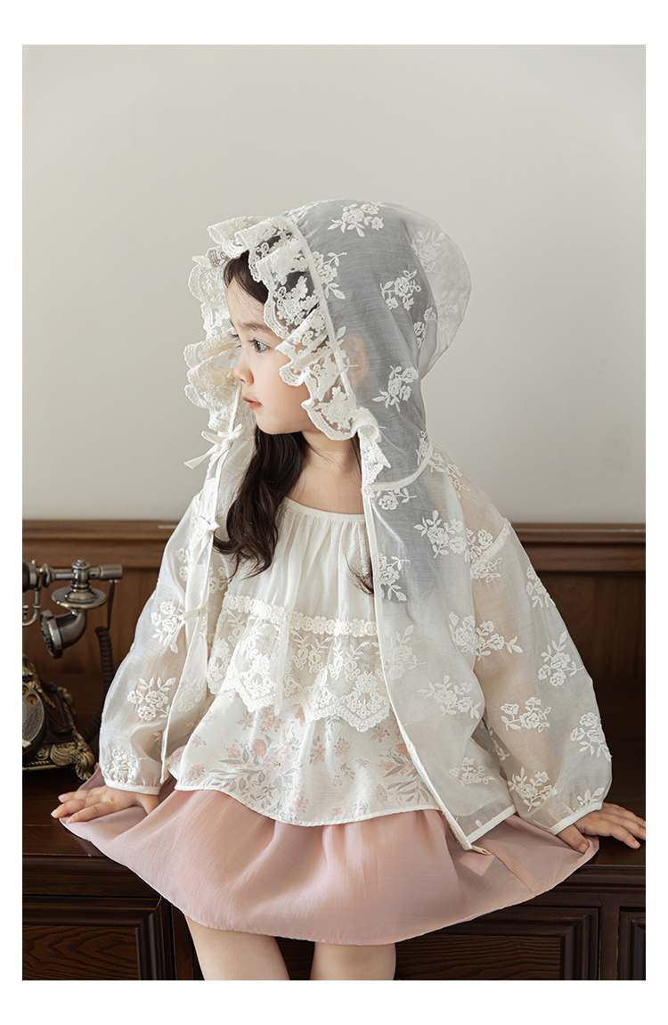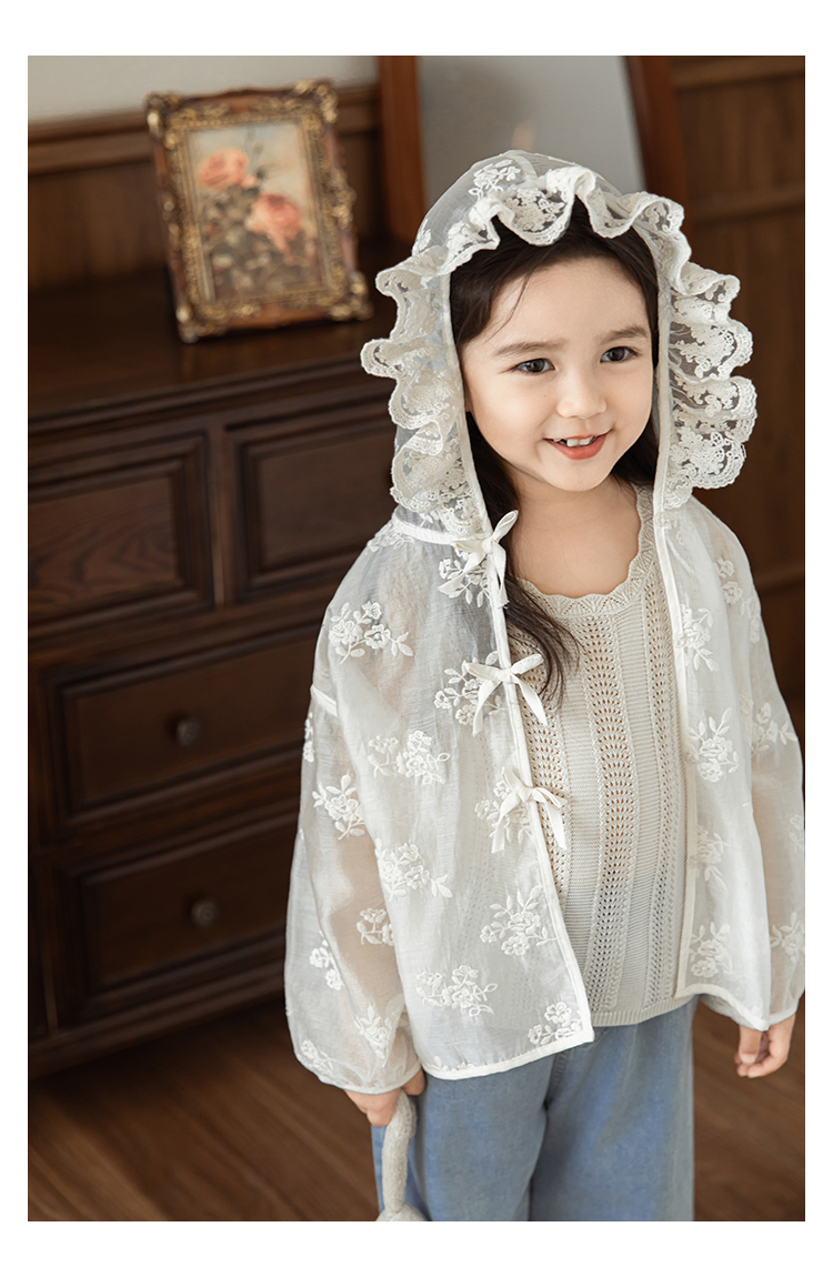 Wulibuyi 소녀 수 놓은 양산 재킷 2025 여름 어린이 달콤하고 귀여운 경량 통기성 후드 재킷 유행