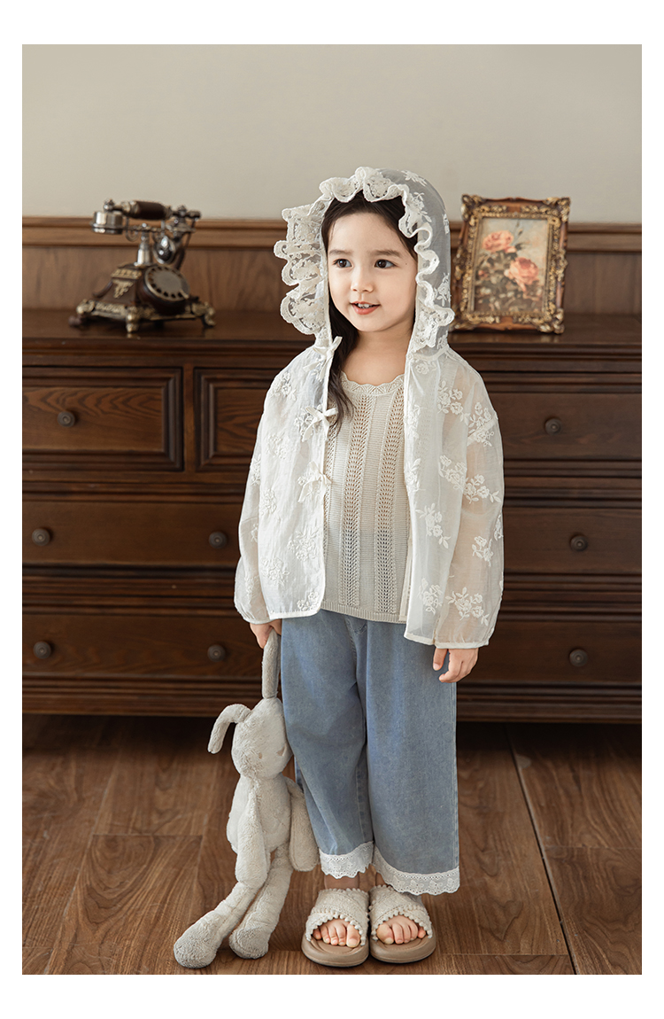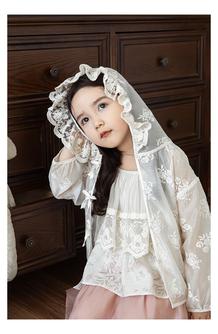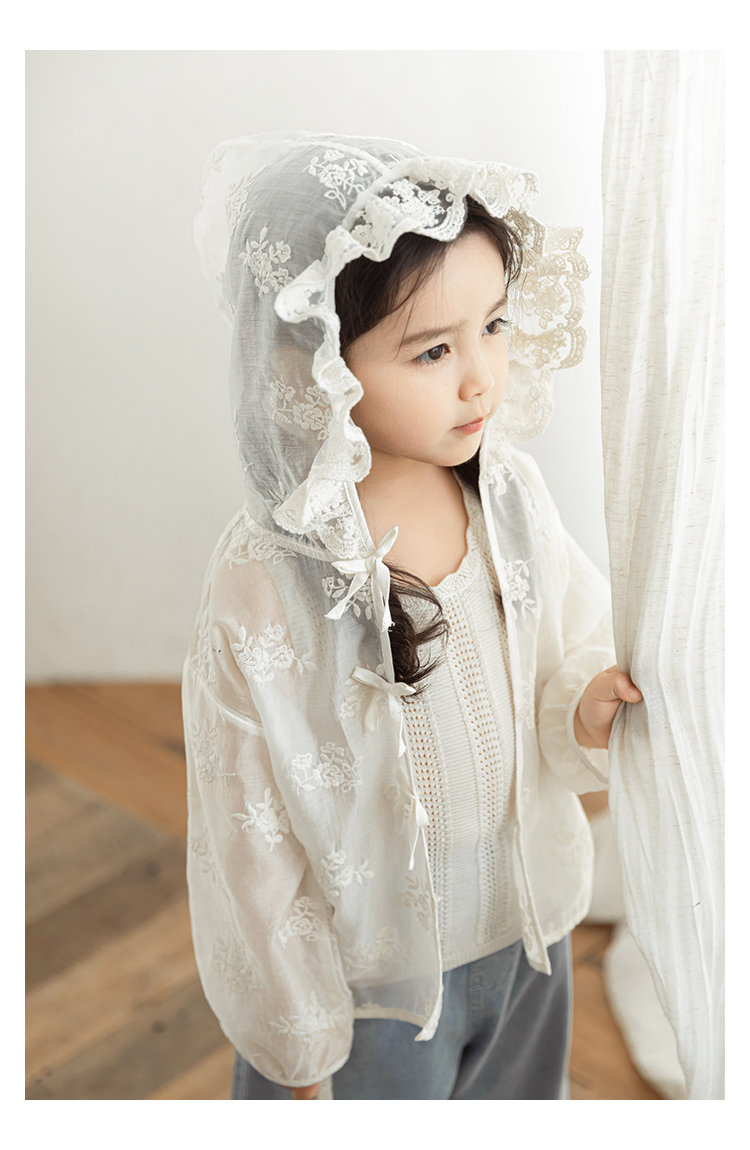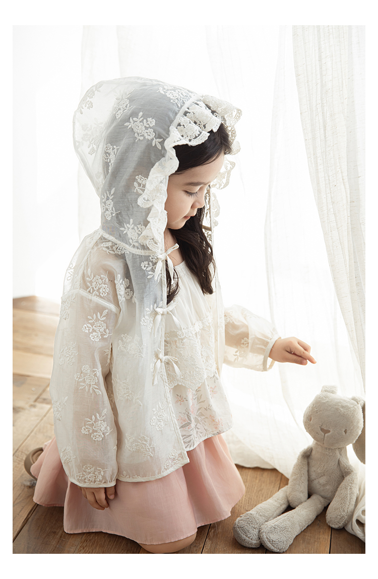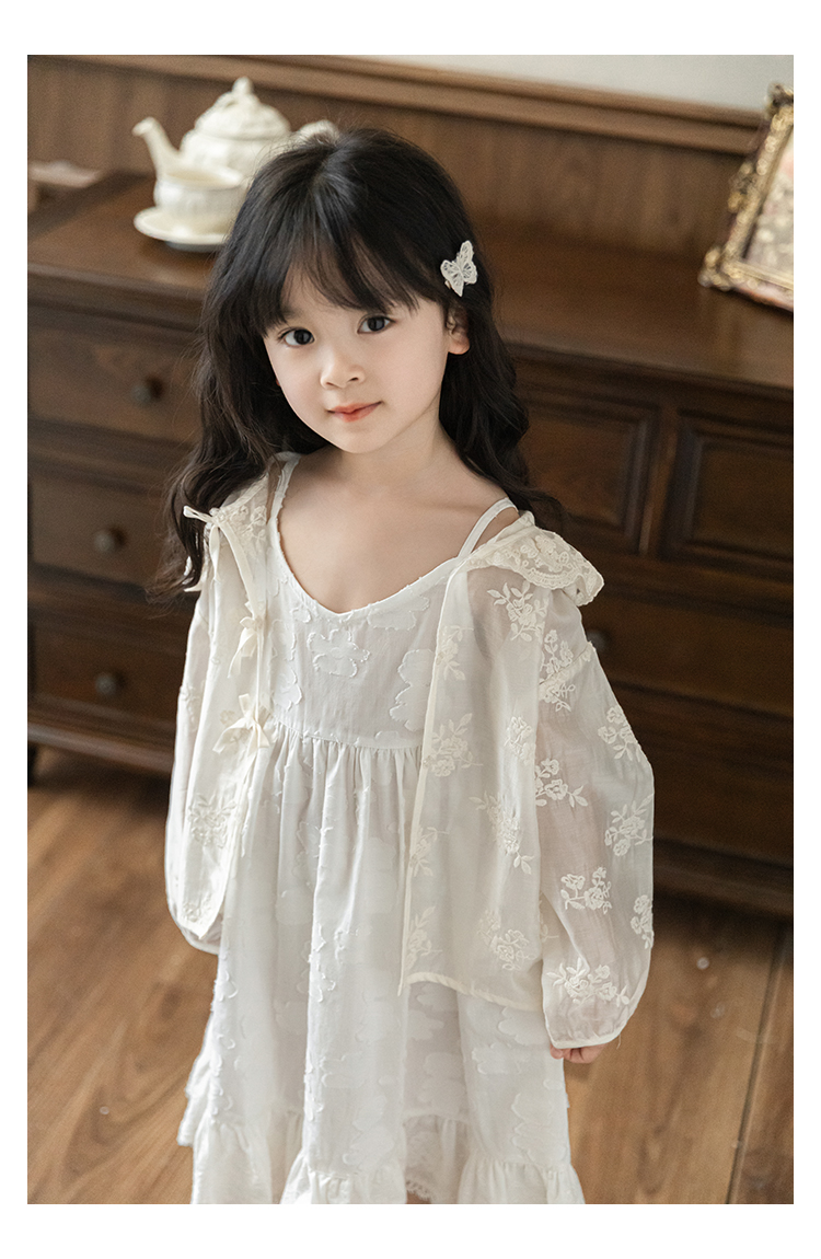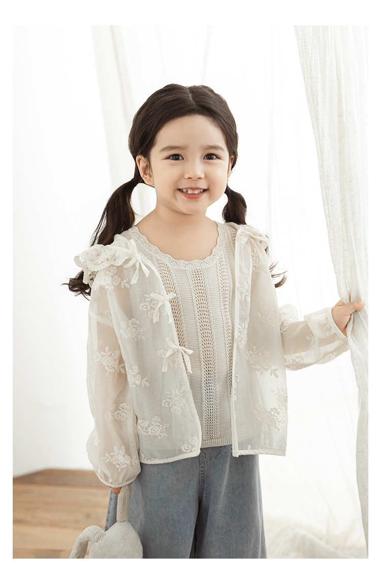 Wulibuyi 소녀 수 놓은 양산 재킷 2025 여름 어린이 달콤하고 귀여운 경량 통기성 후드 재킷 유행