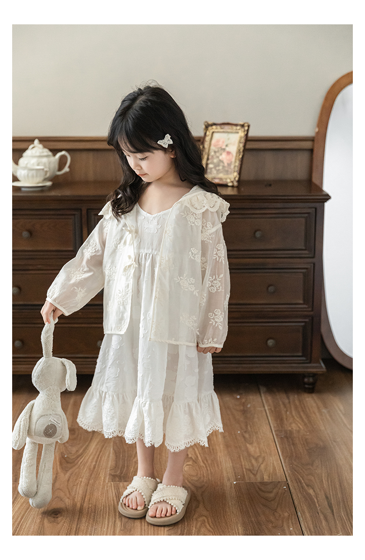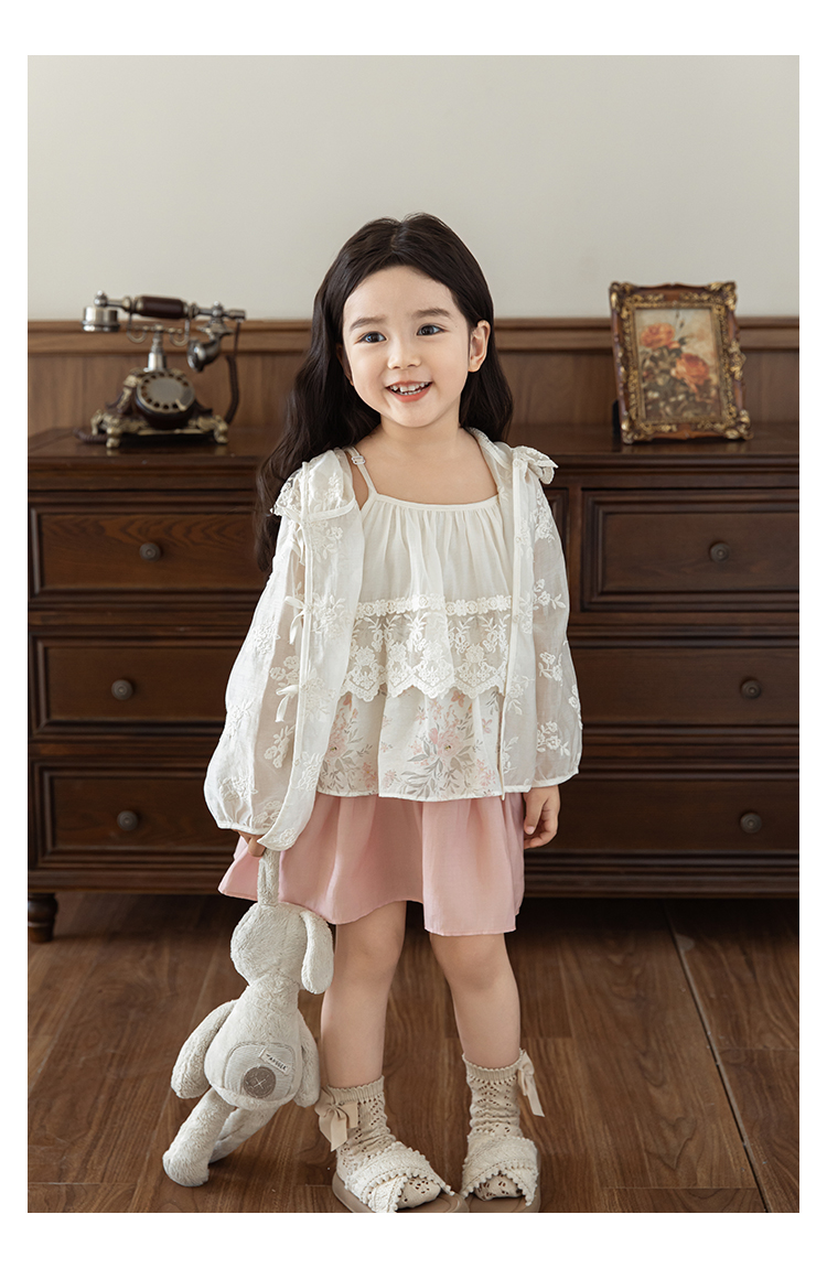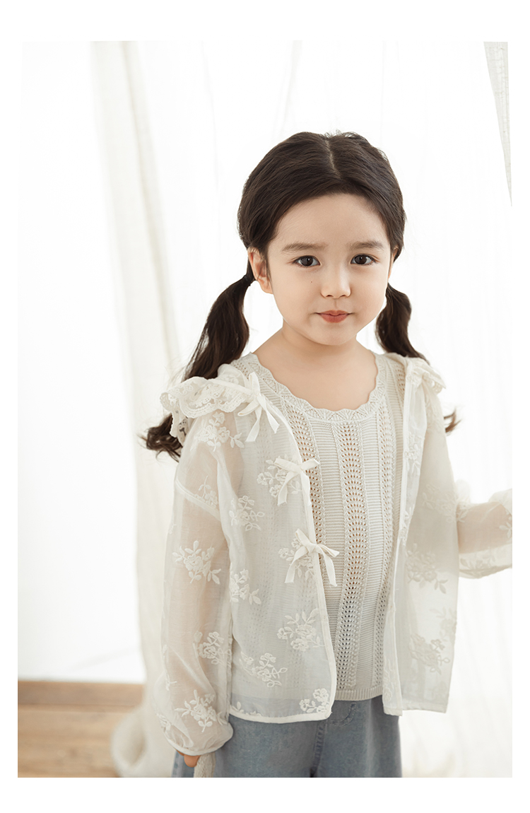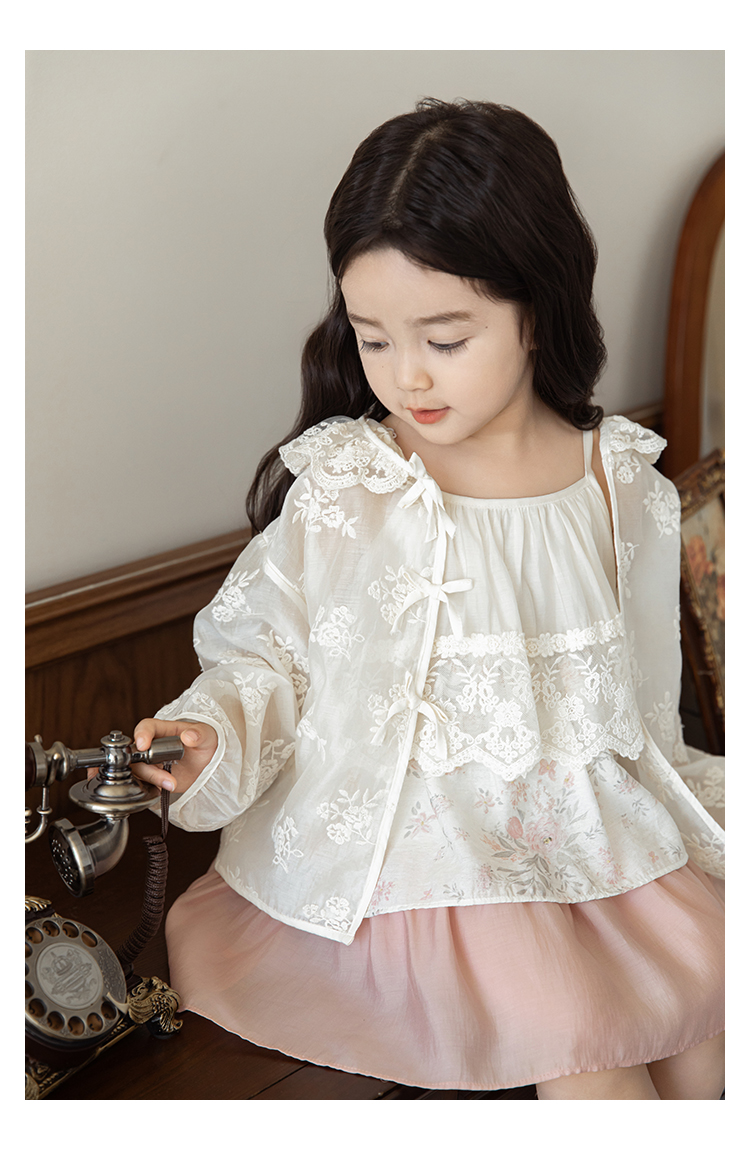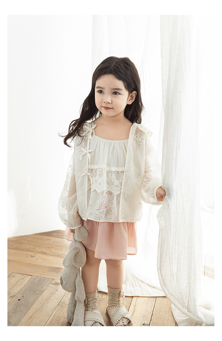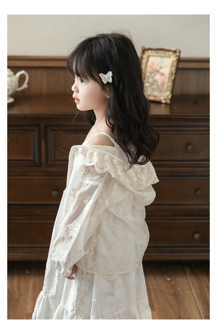 Wulibuyi 소녀 수 놓은 양산 재킷 2025 여름 어린이 달콤하고 귀여운 경량 통기성 후드 재킷 유행