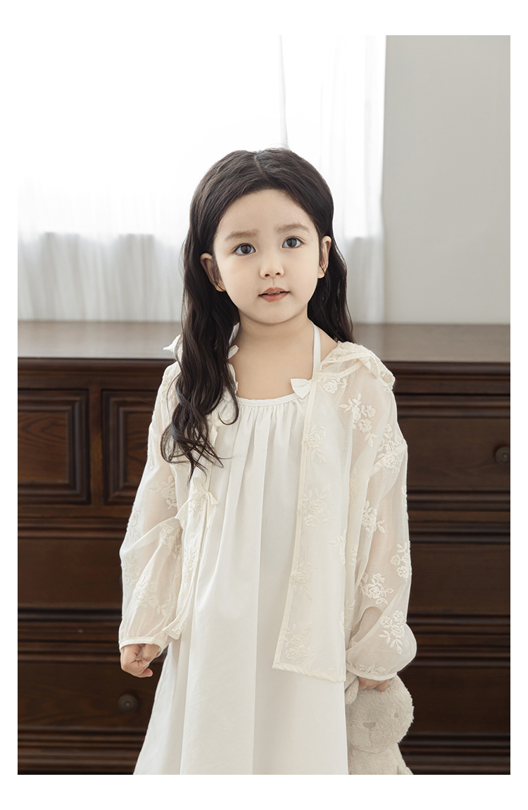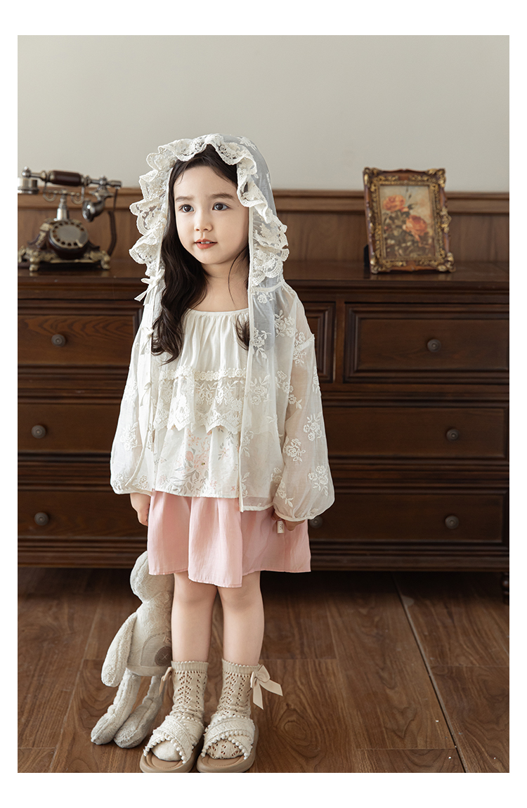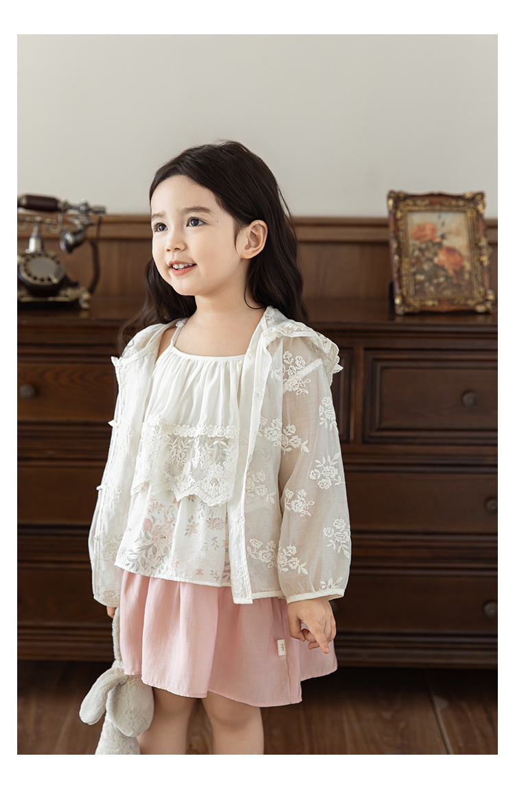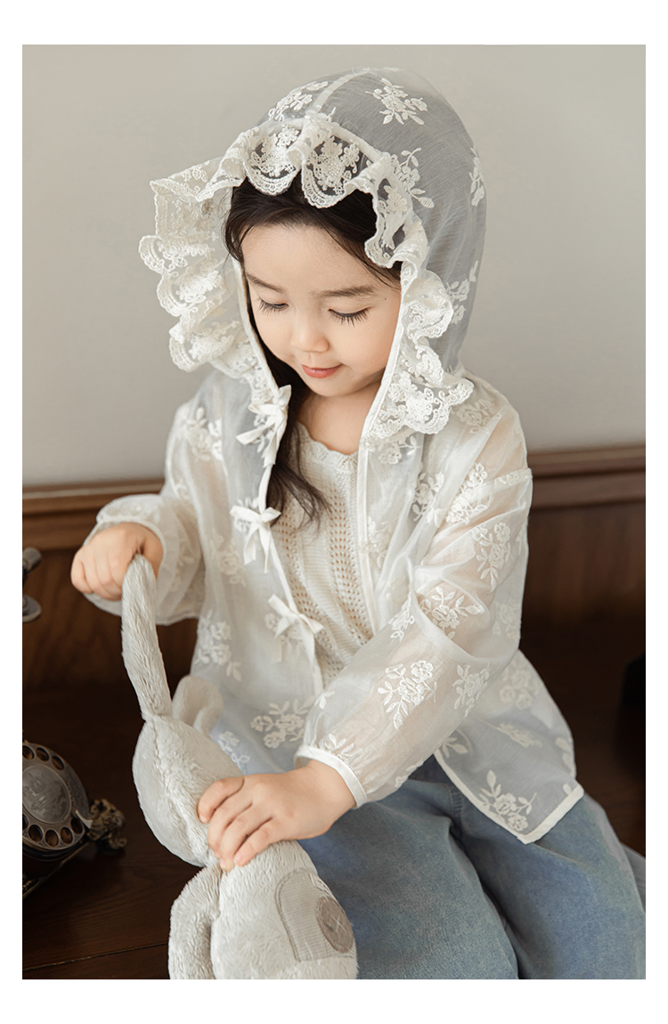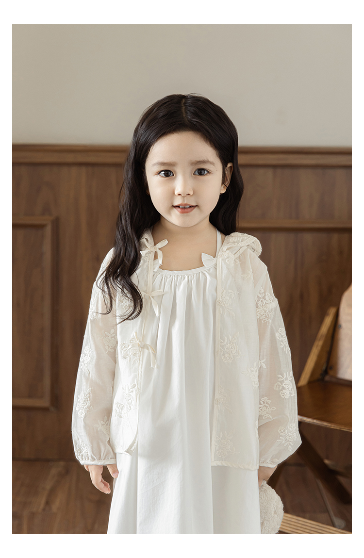 Wulibuyi 소녀 수 놓은 양산 재킷 2025 여름 어린이 달콤하고 귀여운 경량 통기성 후드 재킷 유행스토어 가기