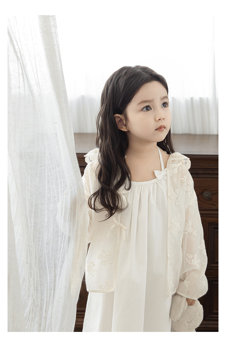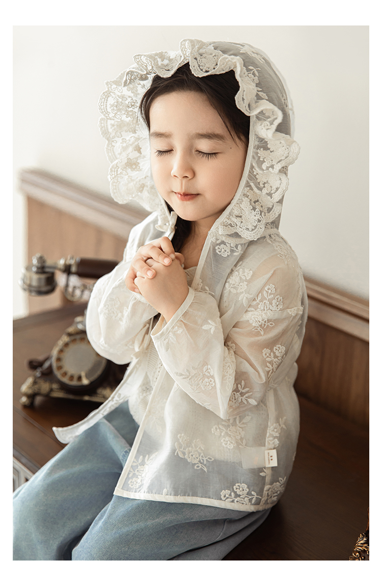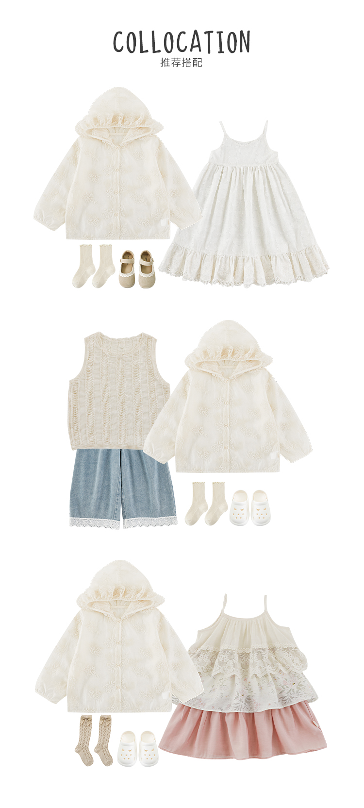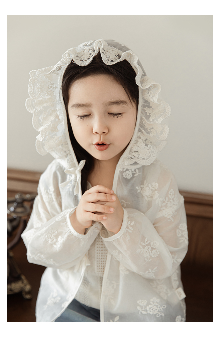 Wulibuyi 소녀 수 놓은 양산 재킷 2025 여름 어린이 달콤하고 귀여운 경량 통기성 후드 재킷 유행스토어 가기
