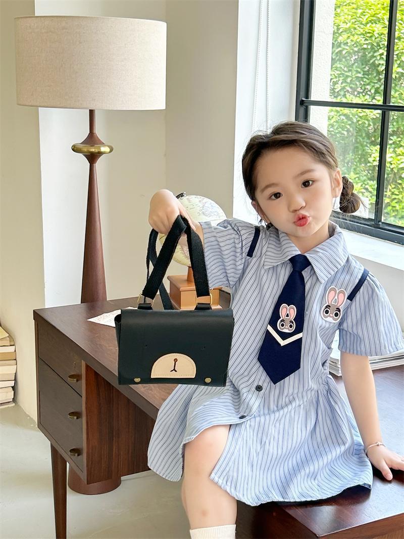 소녀 원피스 2025 새로운 여름 큰 키즈 POLO 칼라 JK 스커트 대학 스타일 토끼 줄무늬 셔츠 스커트 여름스토어 가기