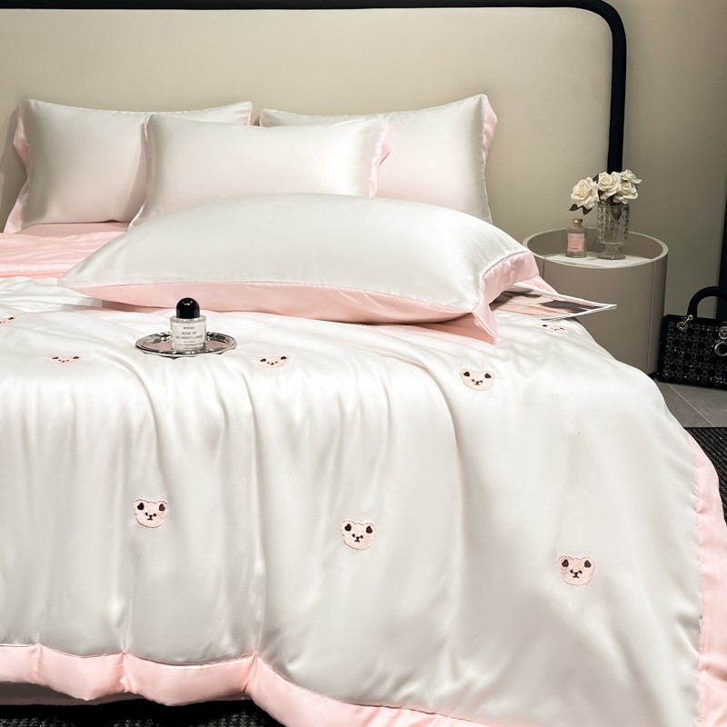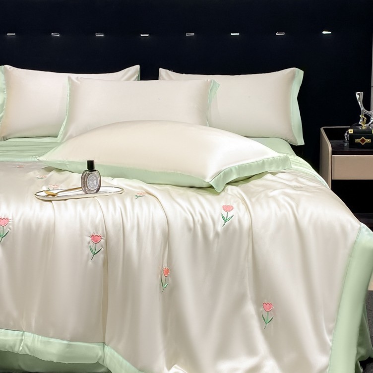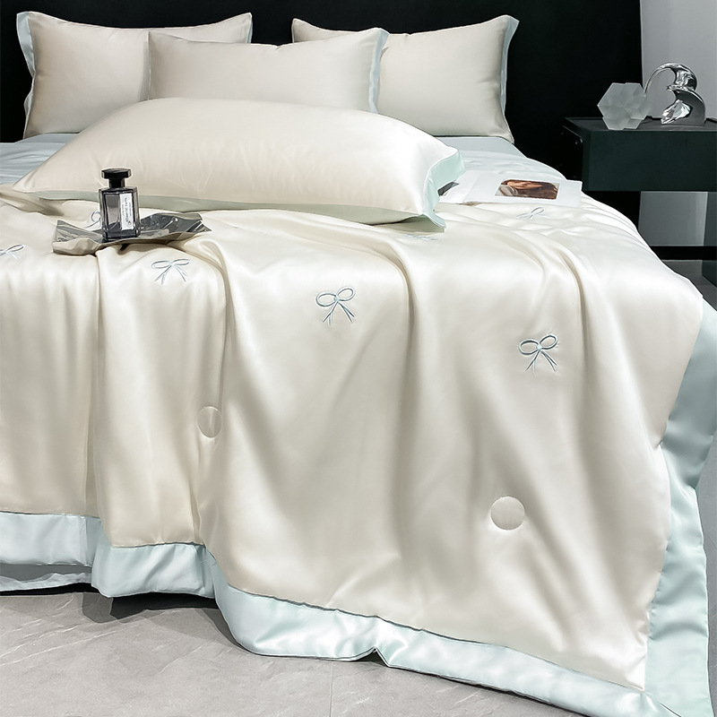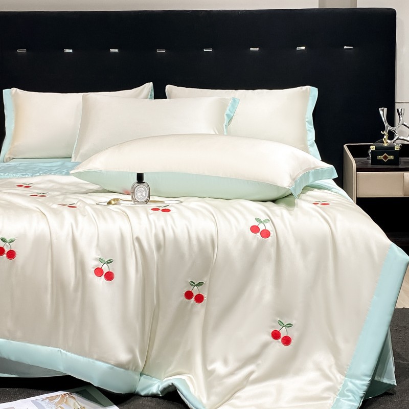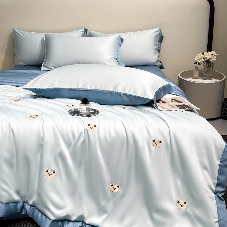 여름 기계 세탁기 아이스 실크 여름 쿨 퀼트 4 피스 실크 텐셀 싱글 및 더블 얇은 에어컨 이불스토어 가기