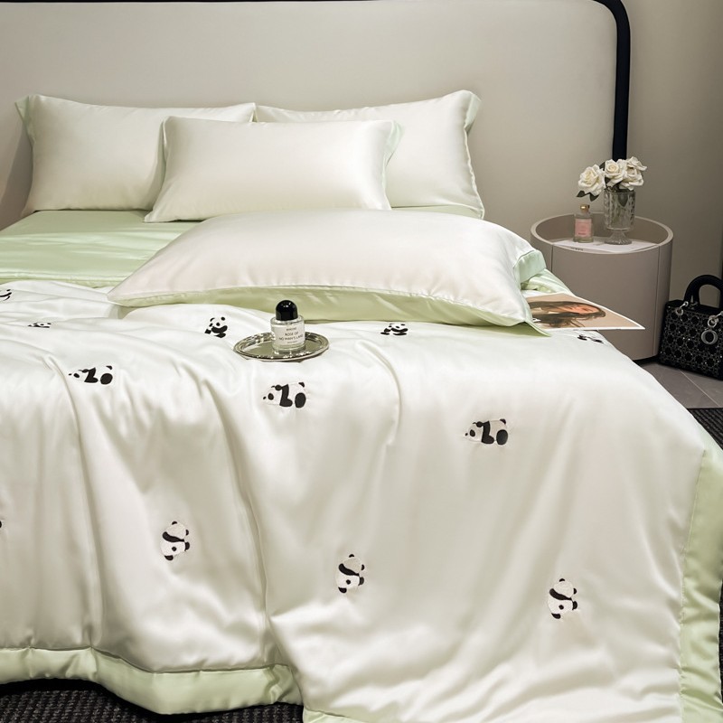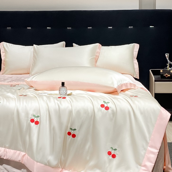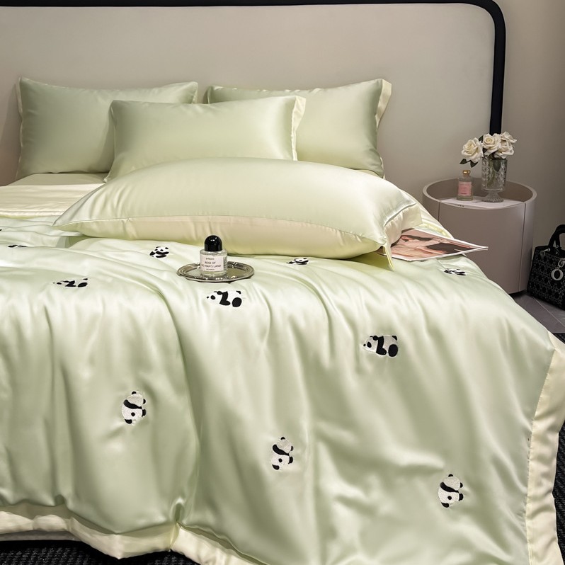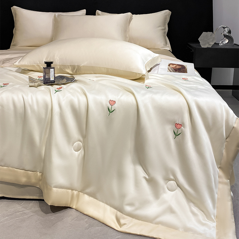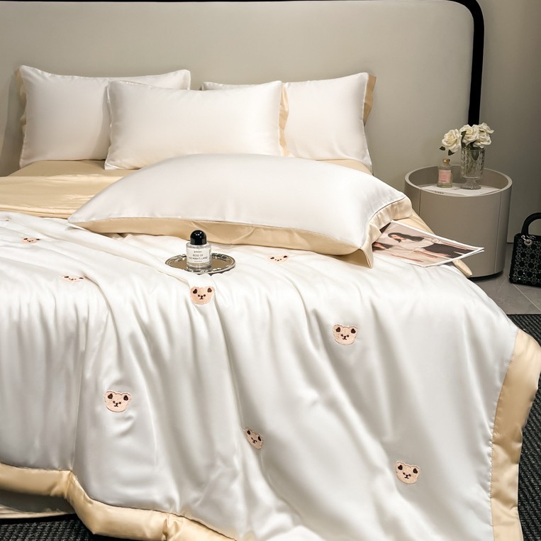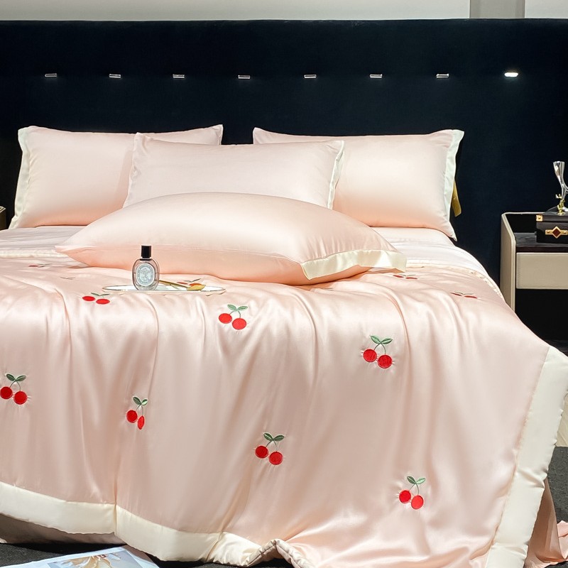 여름 기계 세탁기 아이스 실크 여름 쿨 퀼트 4 피스 실크 텐셀 싱글 및 더블 얇은 에어컨 이불스토어 가기