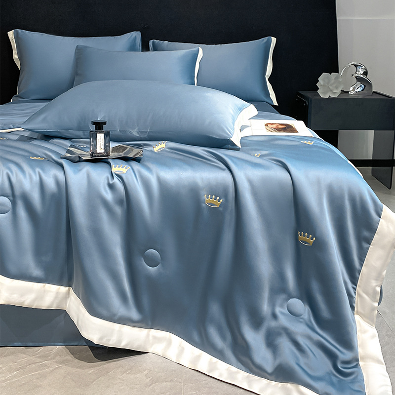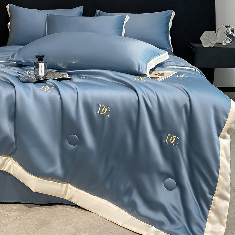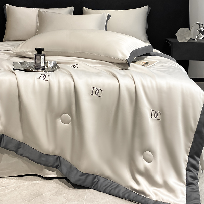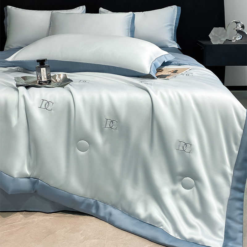 여름 기계 세탁기 아이스 실크 여름 쿨 퀼트 4 피스 실크 텐셀 싱글 및 더블 얇은 에어컨 이불