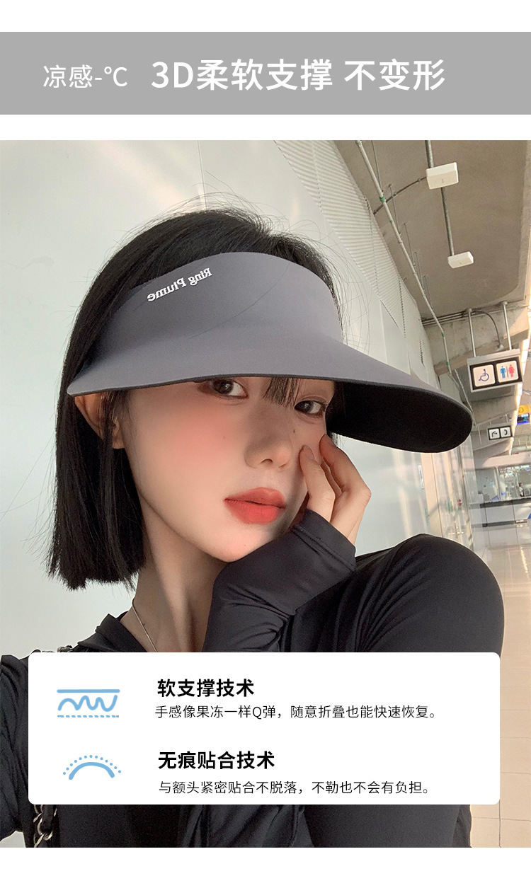 아이스 실크 추적없는 통합 선 스크린 모자 여성의 여름 빈 탑 빅 브림 접이식 햇빛 UV 보호 태양 모자